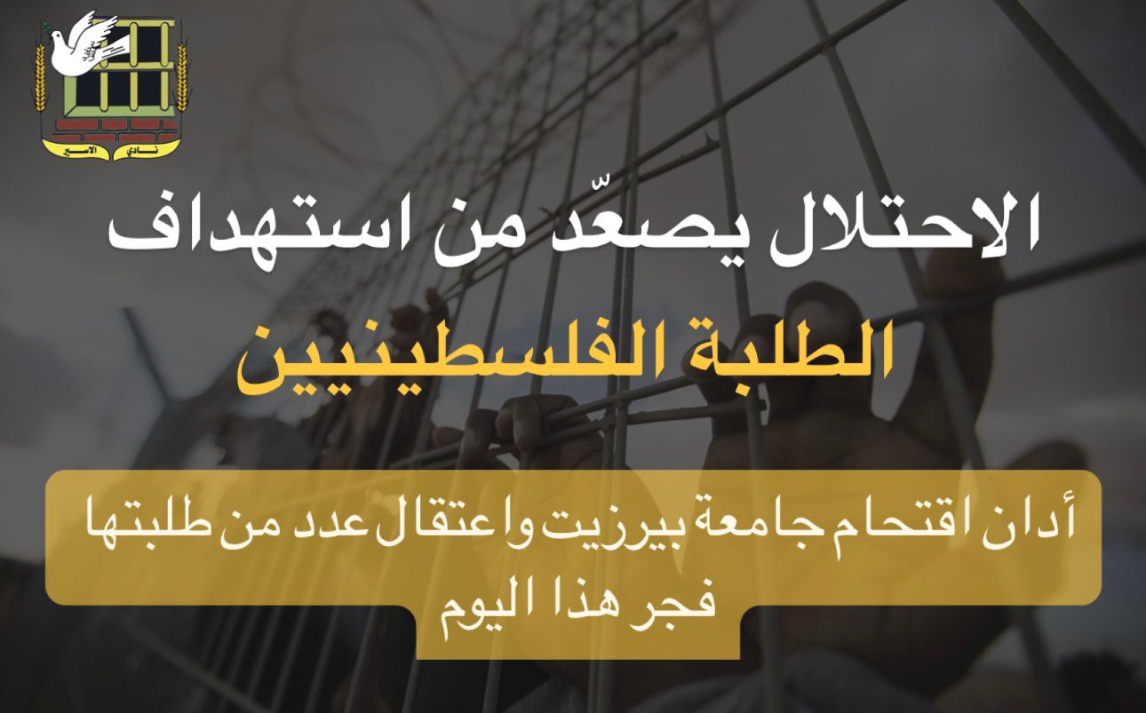 نادي الأسير: الاحتلال يصعّد من استهداف الطلبة الفلسطينيين