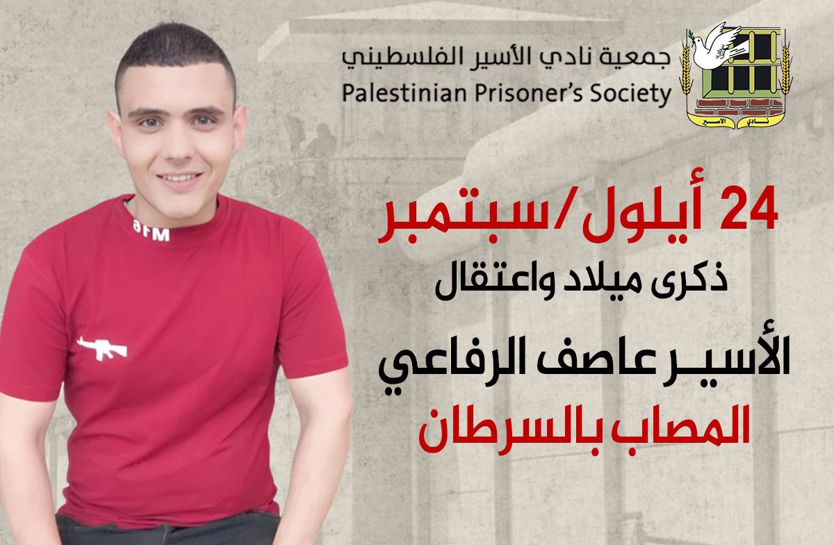 نادي الأسير: يصادف اليوم الـ24 من أيلول/سبتمبر ذكرى ميلاد واعتقال الأسير عاصف الرفاعي