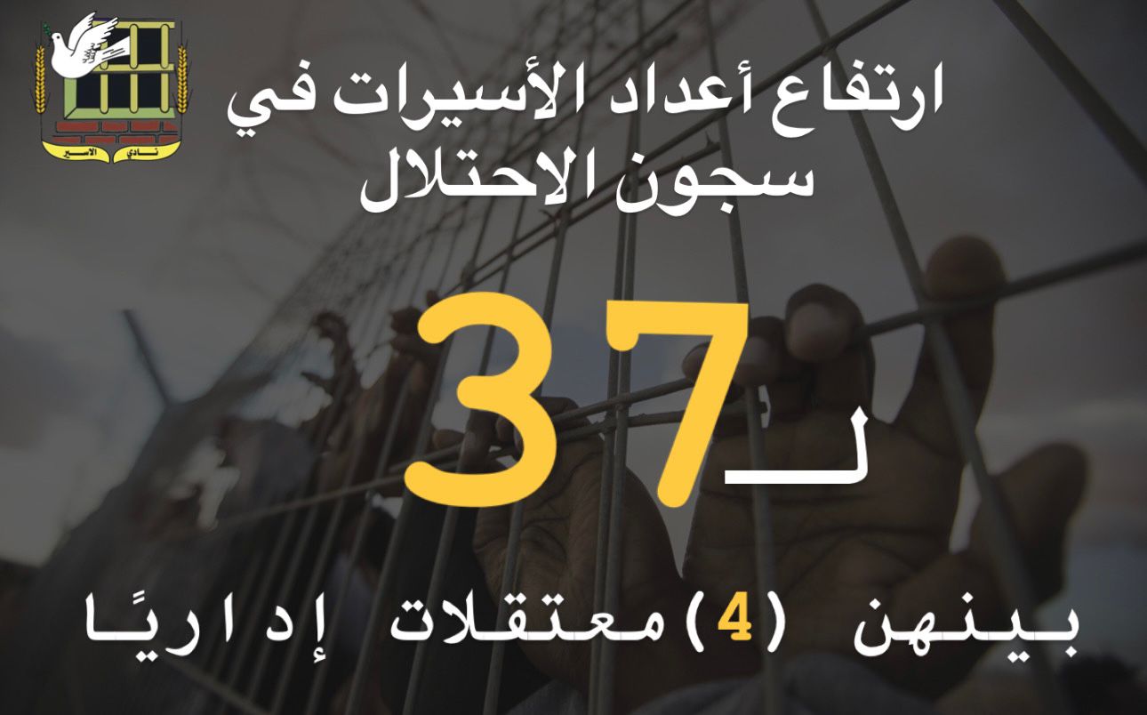 نادي الأسير: ارتفاع عدد الأسيرات في سجون الاحتلال لـ(37)