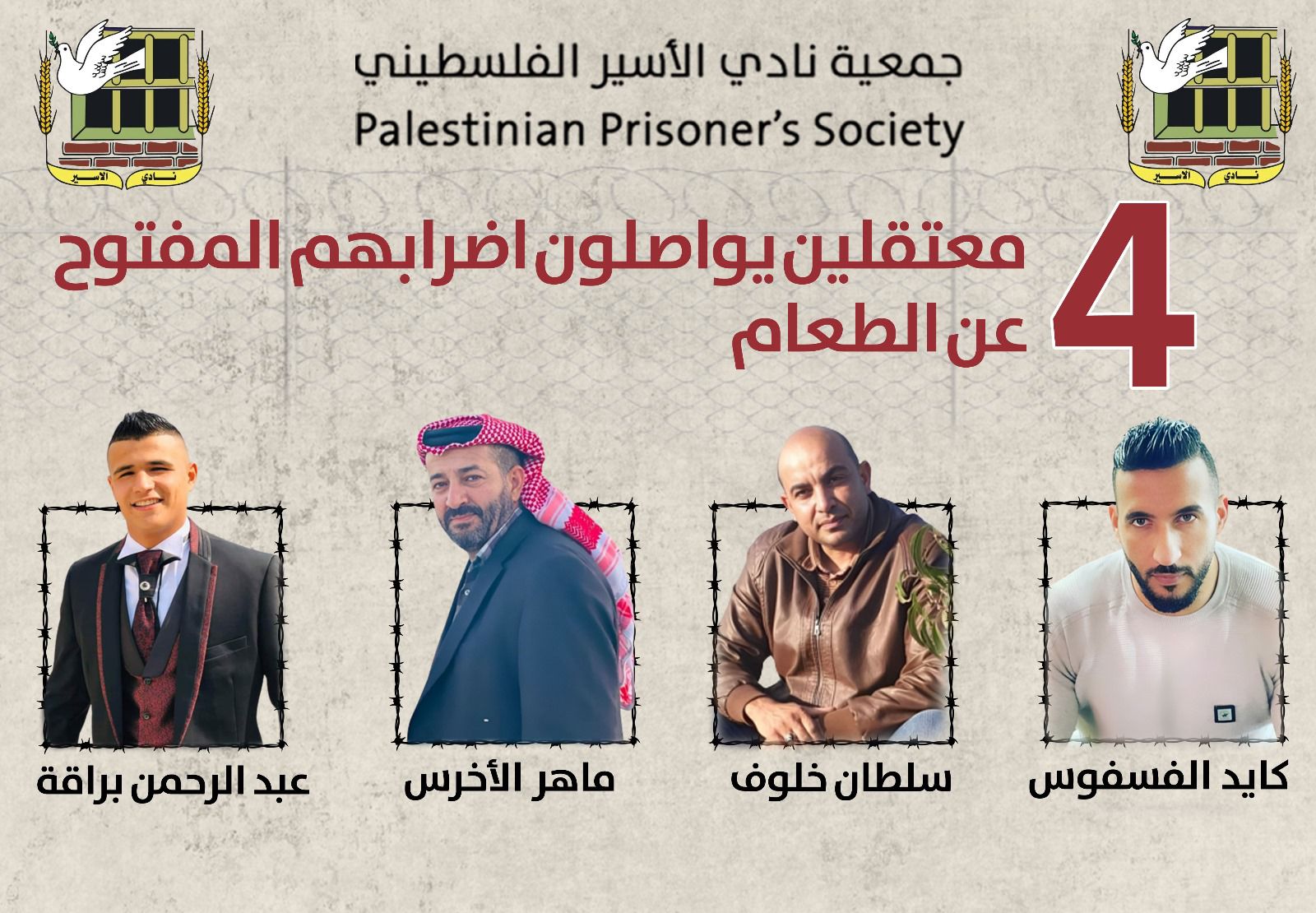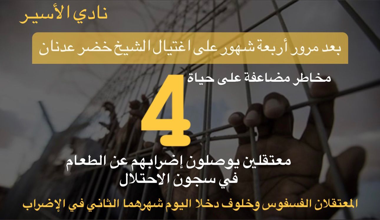 نادي الأسير: مخاطر مضاعفة على حياة أربعة معتقلين يوصلون إضرابهم عن الطعام في سجون الاحتلال