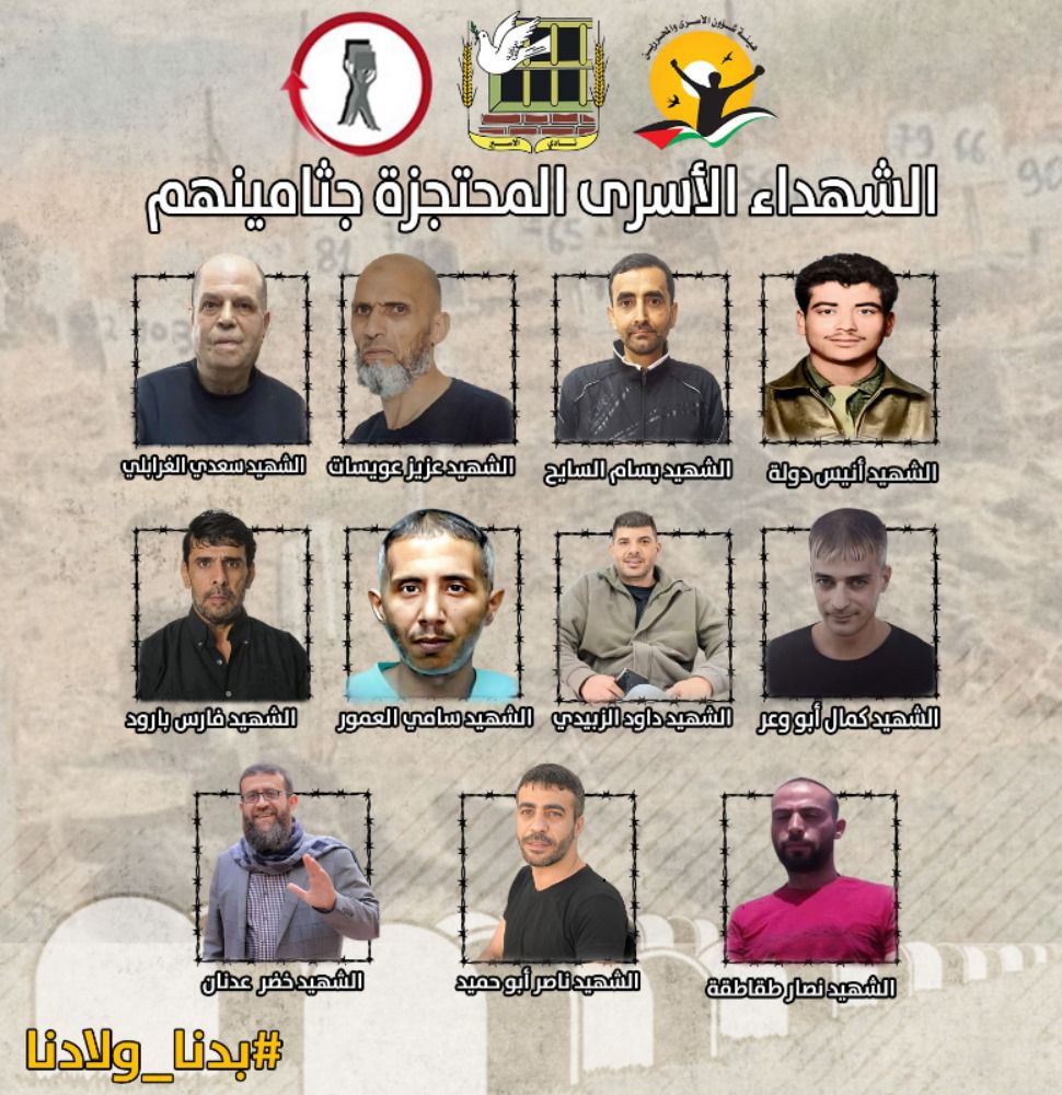 نادي الأسيـر: في اليوم الوطني لاسترداد جثامين الشهداء، الاحتلال يواصل احتجاز جثامين 11 أسيراً من شهداء الحركة الأسيرة