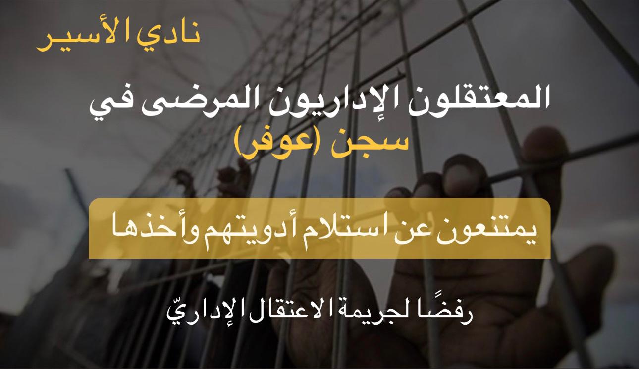 نادي الأسير: المعتقلون الإداريون المرضى في سجن (عوفر) يمتنعون عن استلام أدويتهم وأخذها رفضًا لجريمة الاعتقال الإداريّ