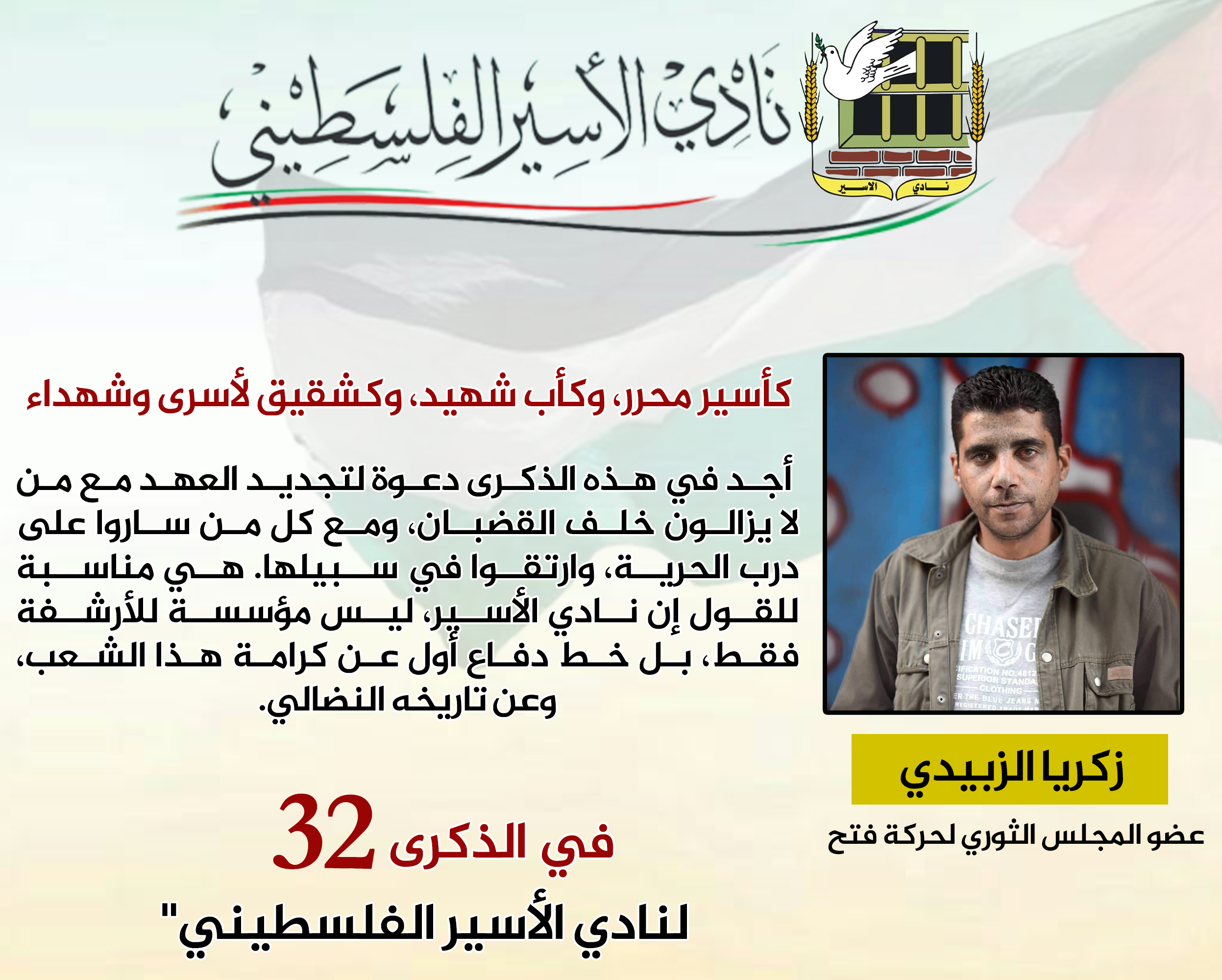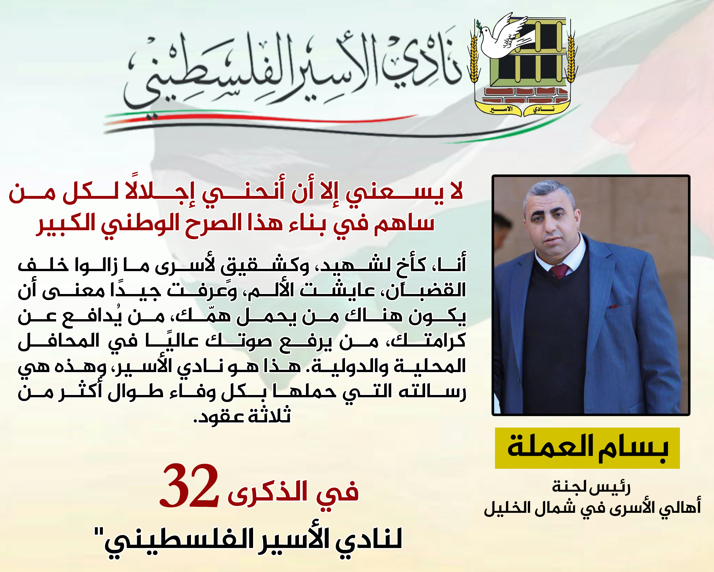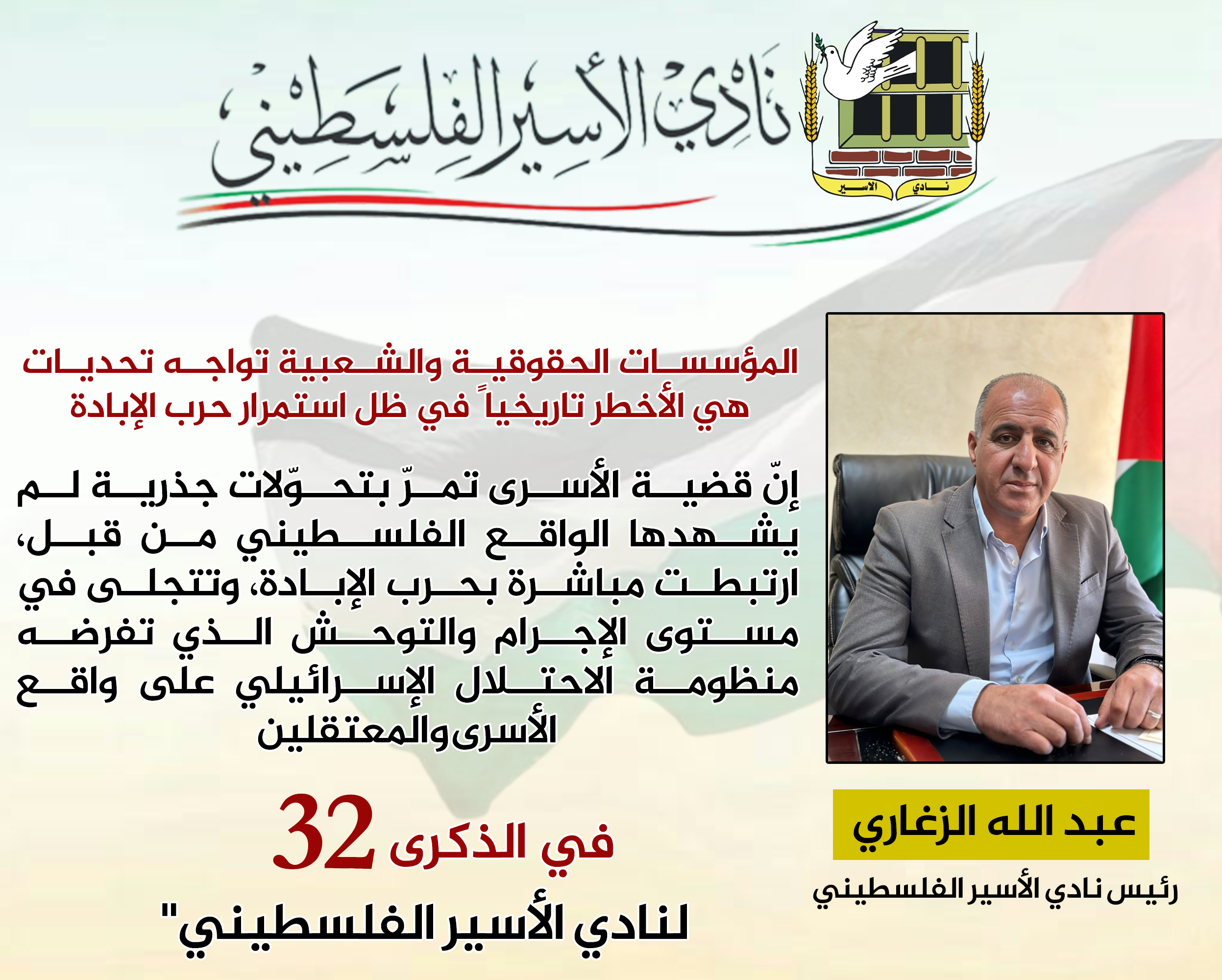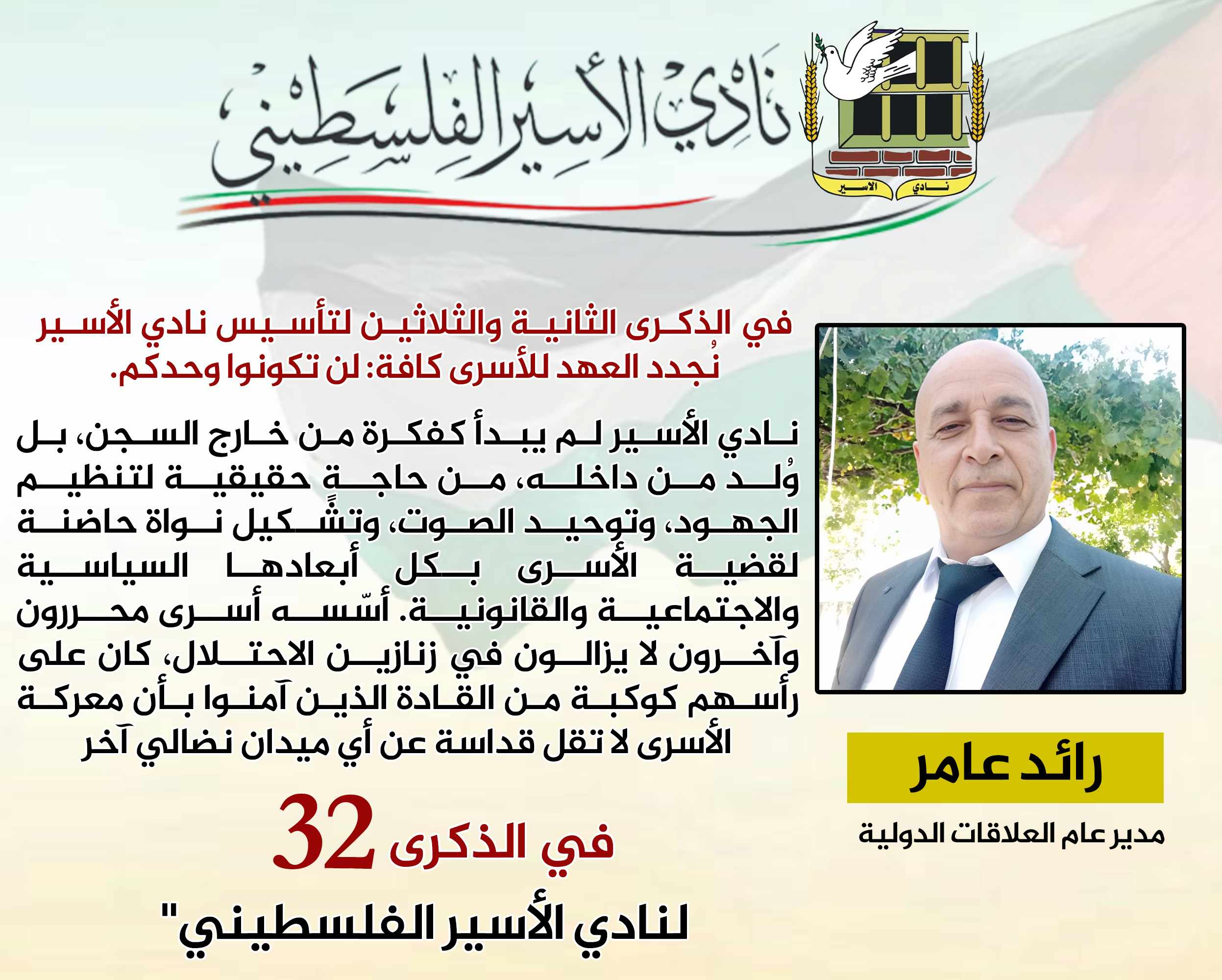بمناسبة الذكرى الـ32 لتأسيس نادي الأسير الفلسطيني