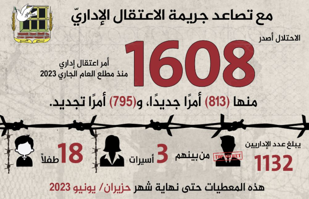 حتى حزيران المنصرم: بلغ عدد المعتقلين الإداريين (1132)