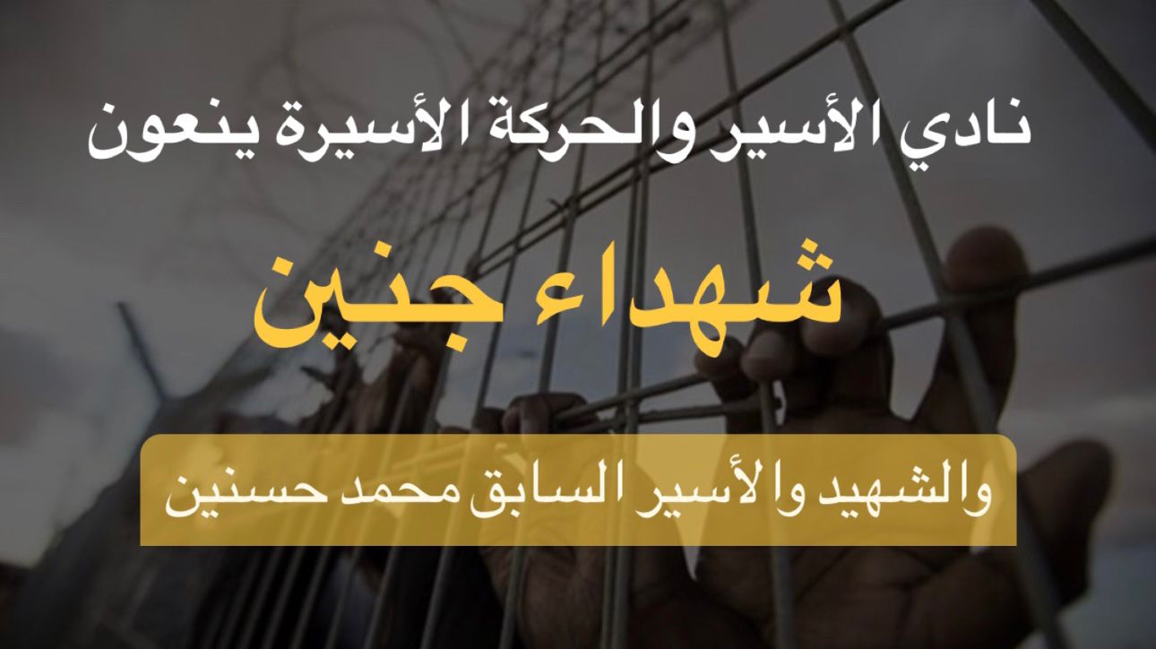 نادي الأسير والحركة الأسيرة ينعون شهداء جنين، والشهيد والأسير السابق محمد حسنين