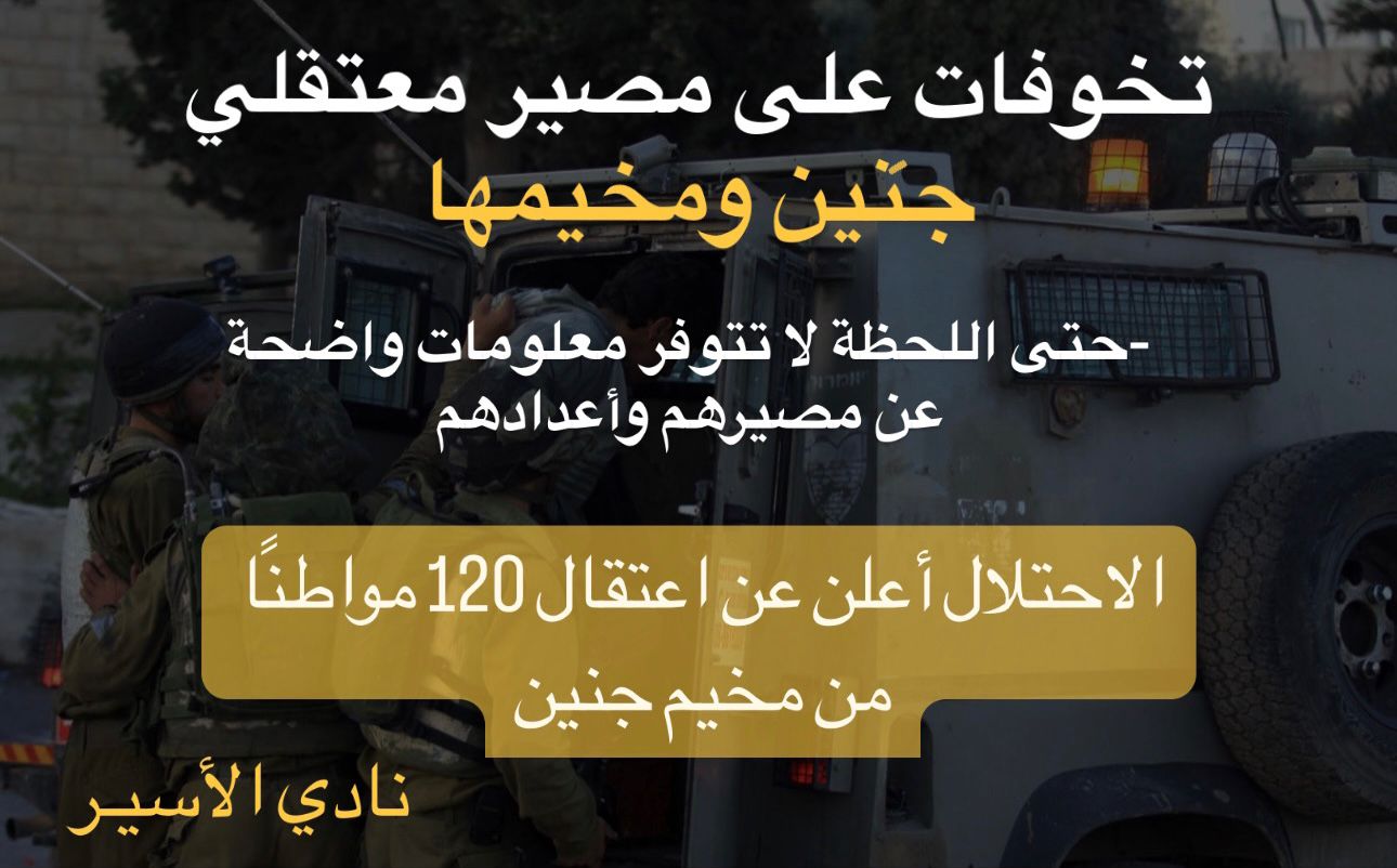 نادي الأسير: تخوفات على مصير معتقلي جنين ومخيمها