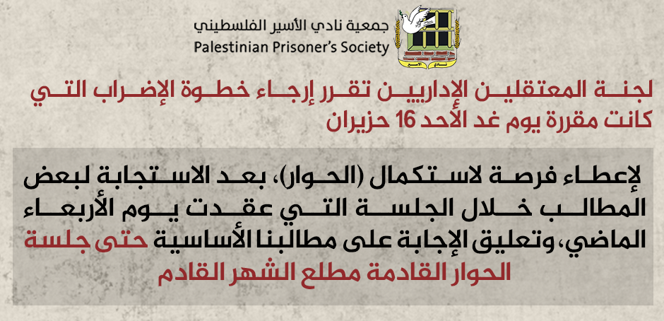 تصريح صحفي صادر عن لجنة الأسرى الإداريين في سجون الاحتلال: