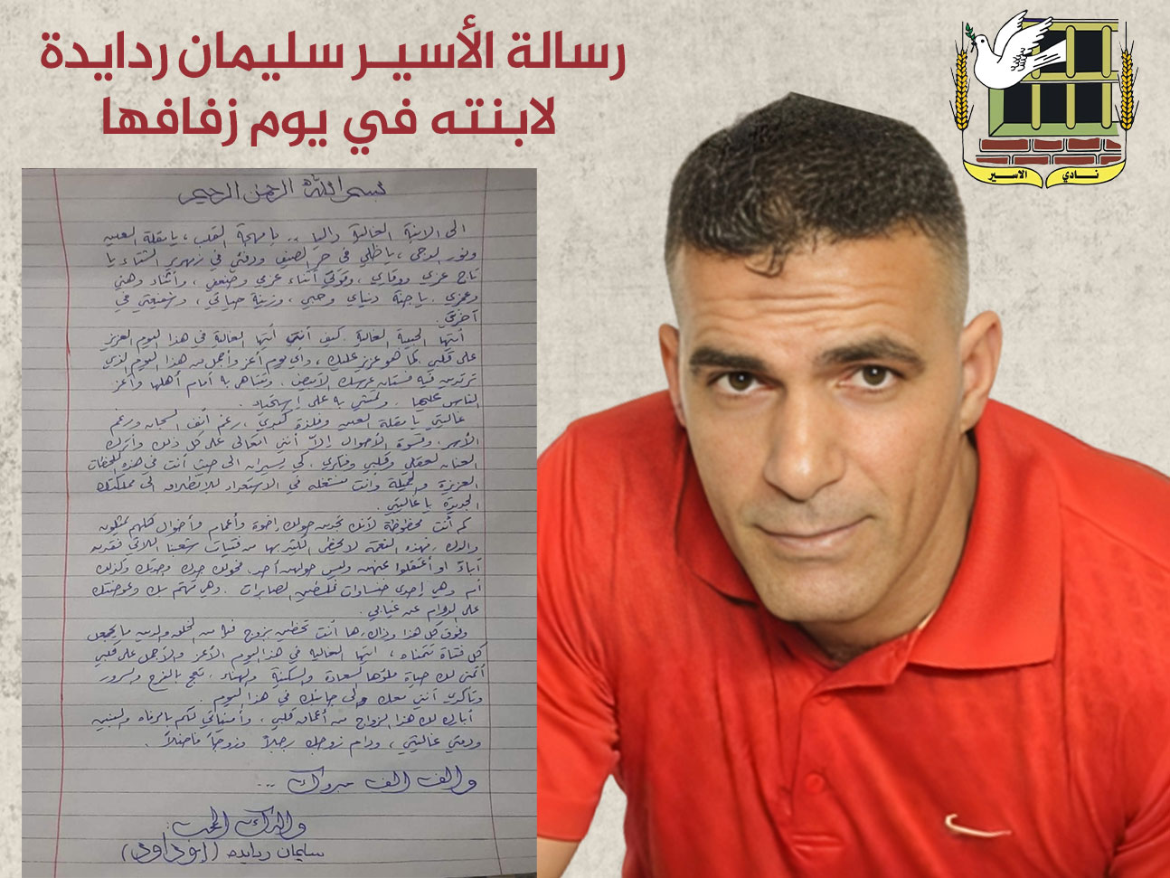 رسالة الأسير سليمان ردايدة لابنته في يوم زفافها