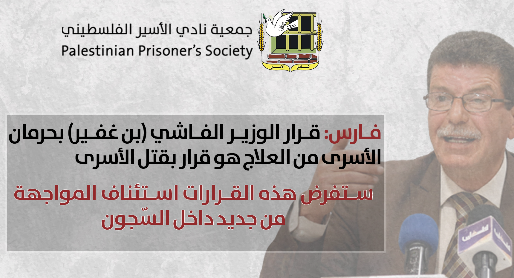 فارس: قرار الوزير الفاشي (بن غفير) بحرمان الأسرى من العلاج هو قرار بقتل الأسرى