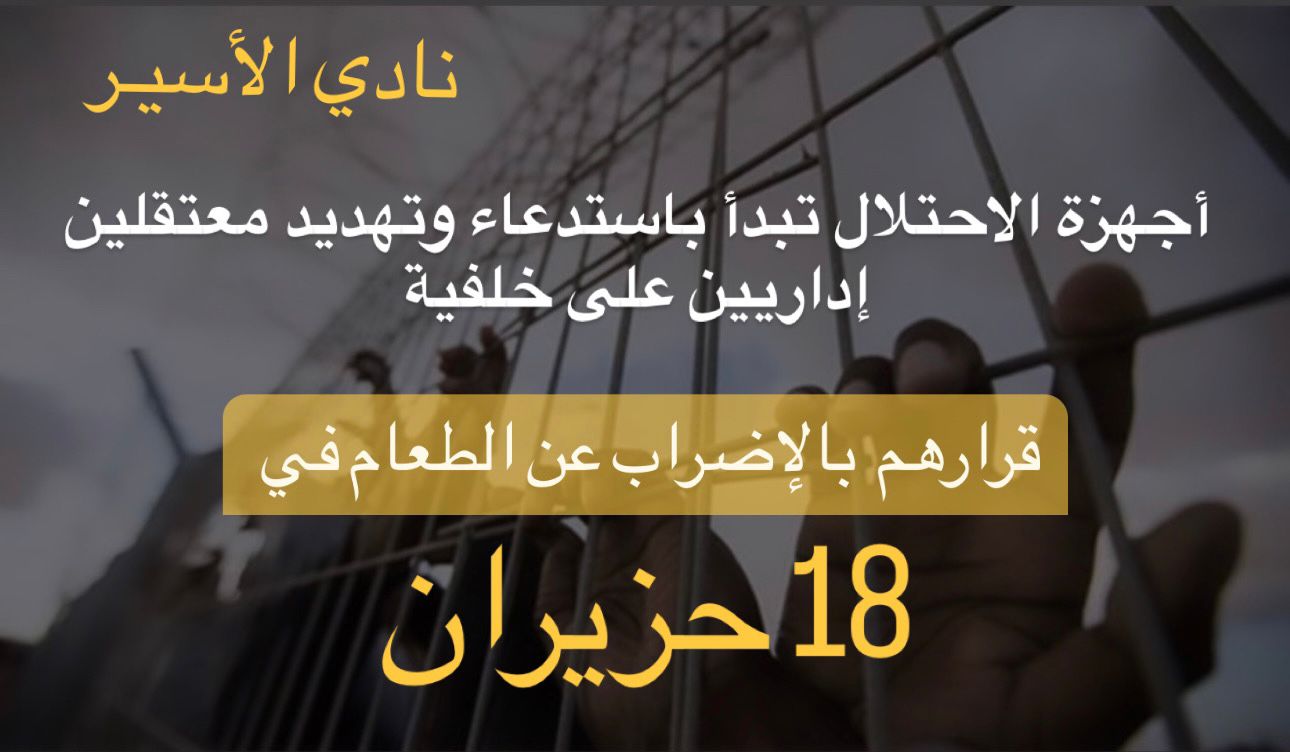 نادي الأسير: أجهزة الاحتلال تبدأ باستدعاء وتهديد معتقلين إداريين على خلفية قرارهم بالإضراب عن الطعام في 18 حزيران