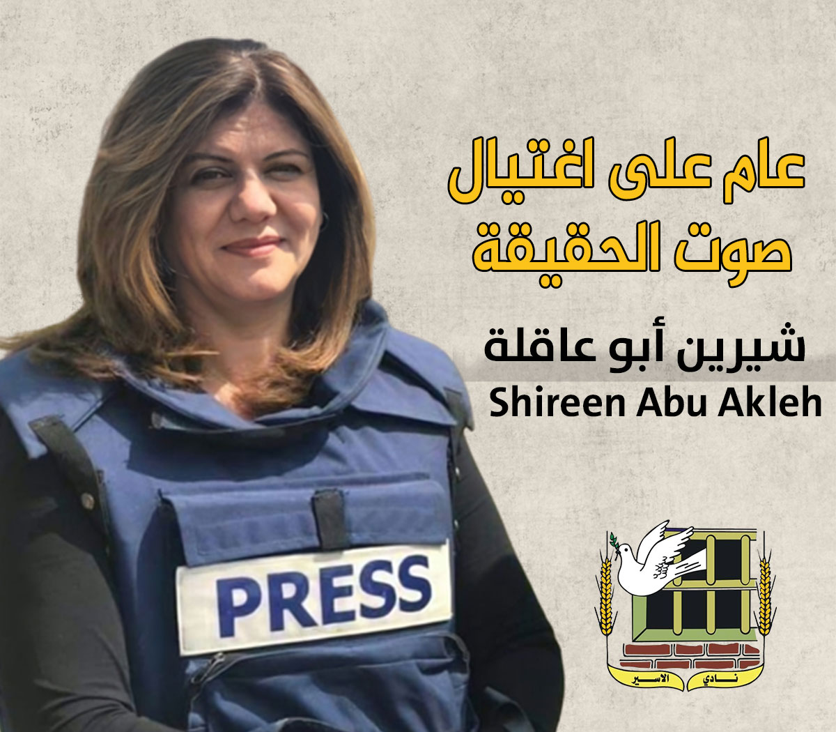 نادي الأسيـر: في الذكرى السنوية الأولى على اغتيال صوت الحقيقة، الصحفية شيرين أبو عاقلة.