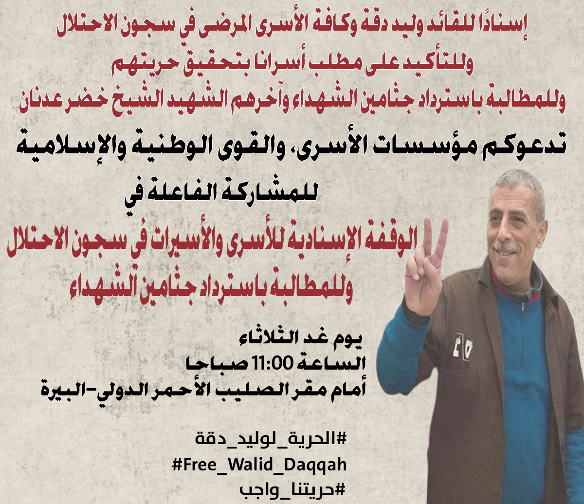 إسنادًا للقائد وليد دقة وكافة الأسرى المرضى في سجون الاحتلال