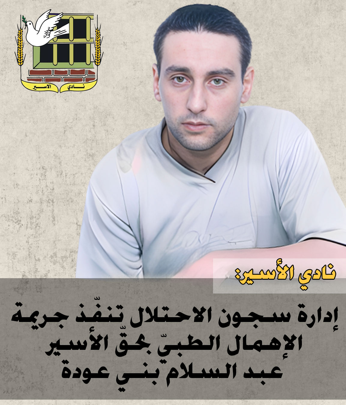 نادي الأسير: إدارة سجون الاحتلال تنفّذ جريمة الإهمال الطبيّ بحقّ الأسير عبد السلام بني عودة