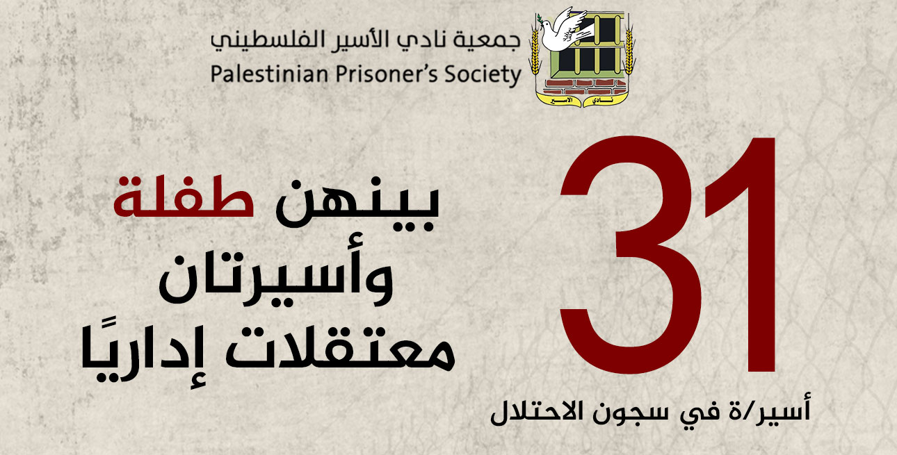 •(31) أسيرة يواصل الاحتلال الإسرائيليّ اعتقالهنّ.