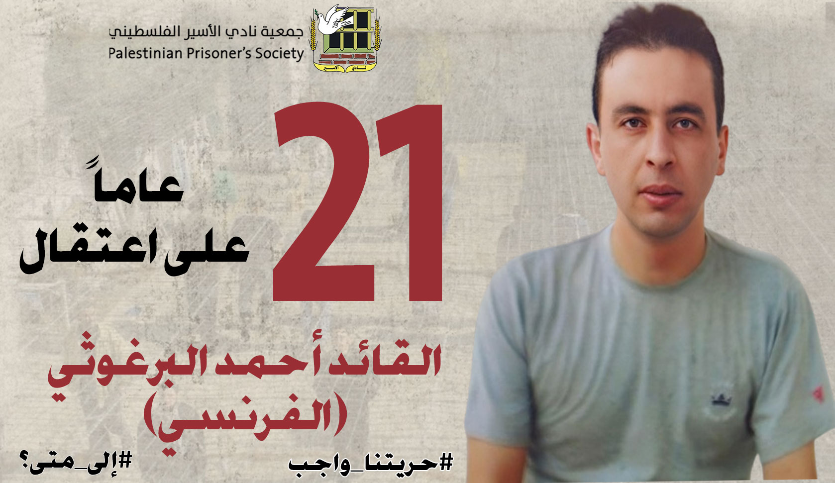 نادي الأسيـر: يدخل الأسير أحمد البرغوثي الملقب “بالفرنسي”، والمحكوم بالسجن المؤبد (13) مرة إضافة إلى 50 عاماً، عامه الـ21 في سجون الاحتلال الاسرائيلي.