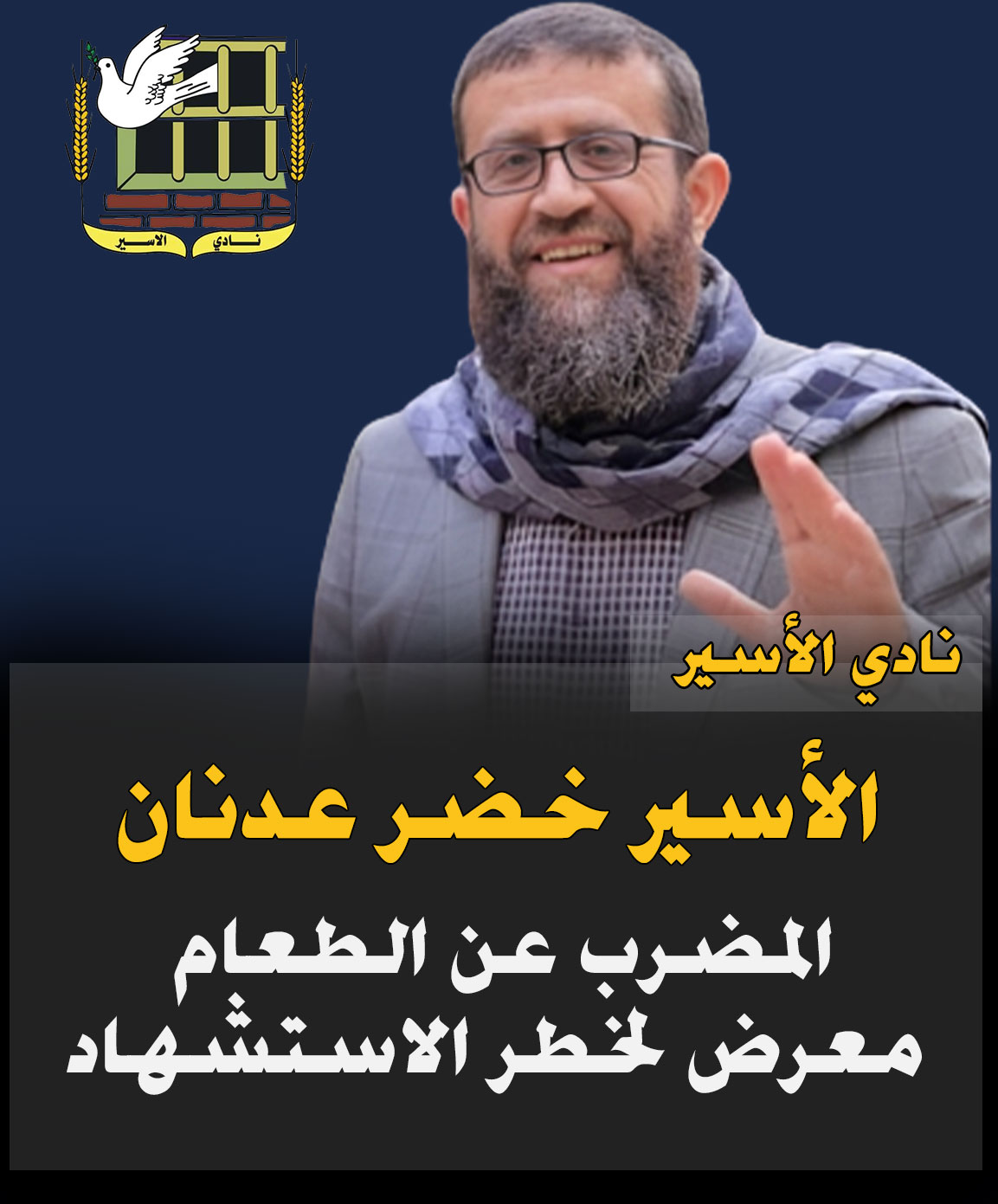 نادي الأسير يحذر من استشهاد الأسير خضر عدنان المضرب عن الطعام منذ 71 يومًا والمحتجز في سجن (الرملة)