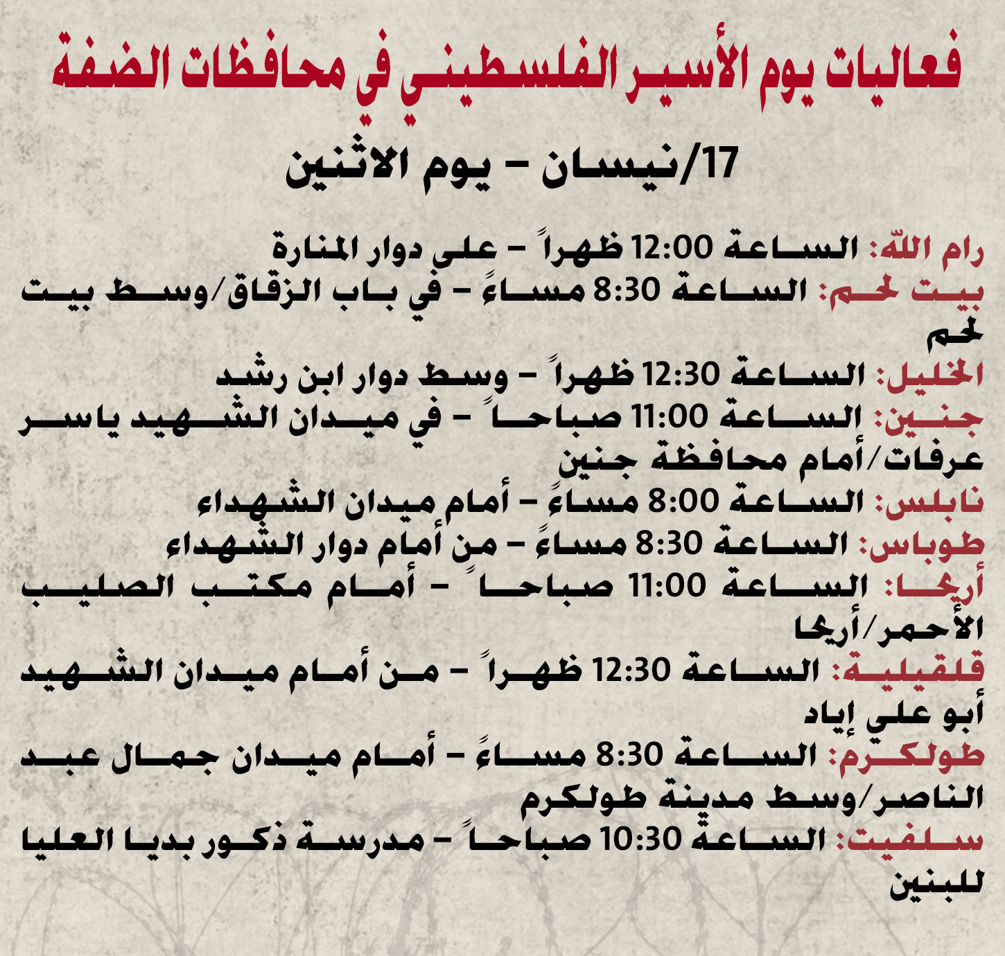 مؤسسات الأسرى والقوى تعلن برنامج فعاليات يوم الأسير لهذا العام