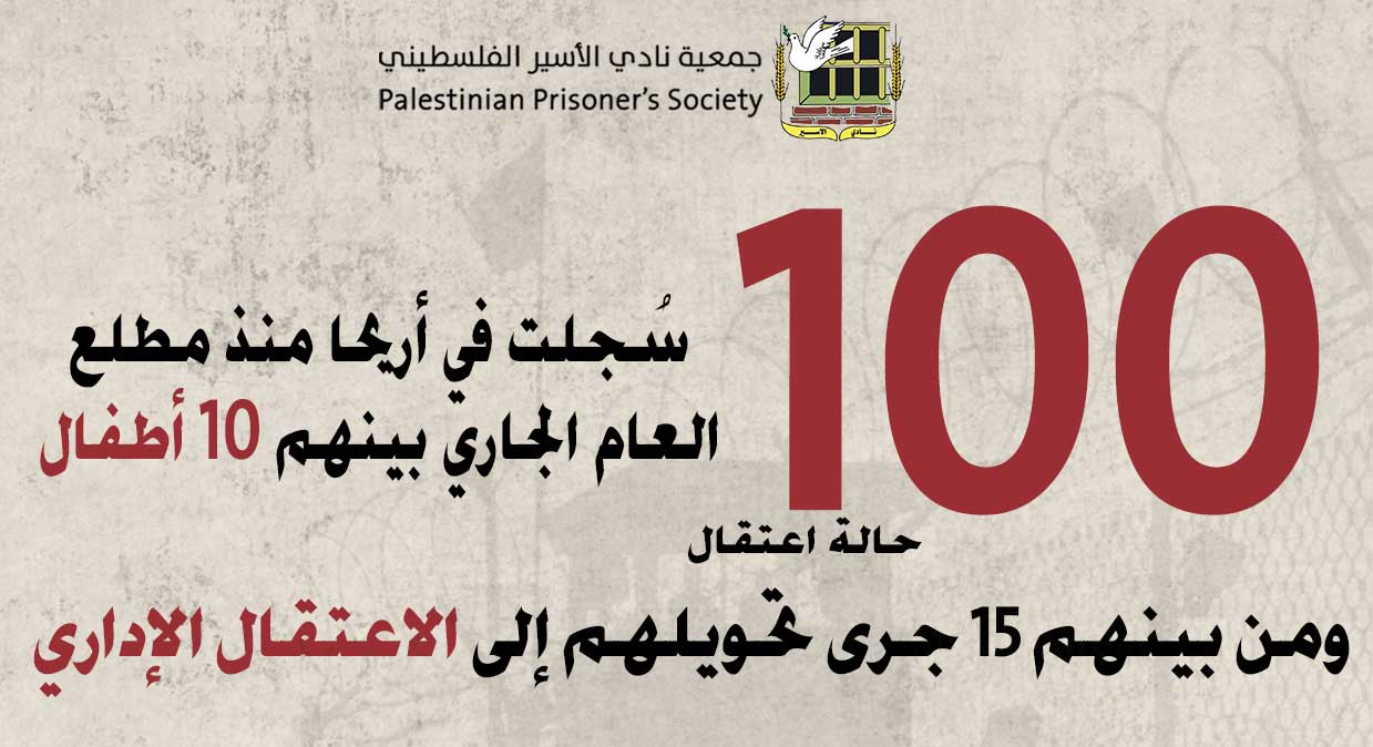 نادي الأسير: (100) حالة اعتقال سُجلت في أريحا منذ مطلع العام الجاري بينهم عشرة أطفال