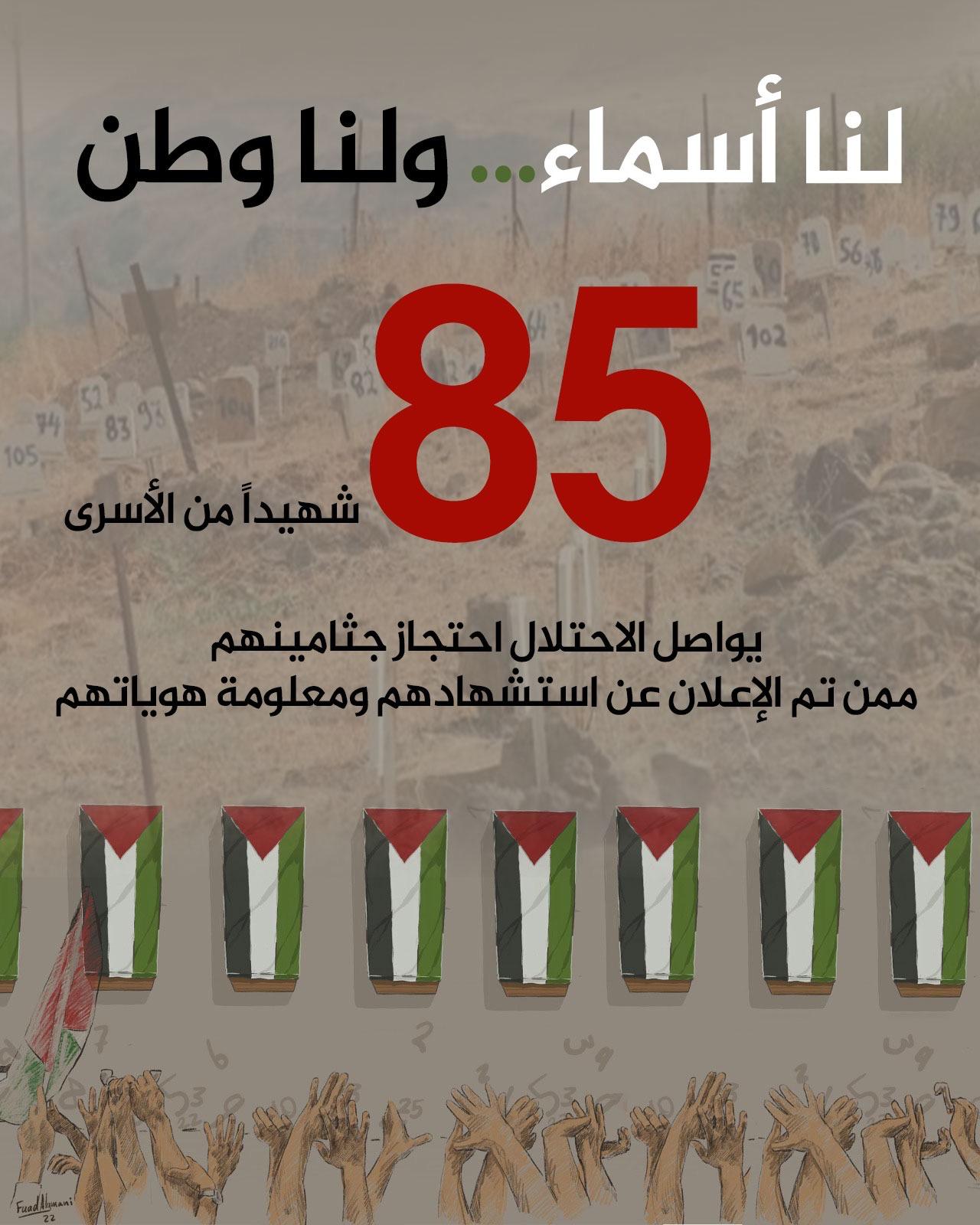 ⭕ 85 شهيدا من شهداء الحركة الأسيرة يواصل الاحتلال احتجاز جثامينهم