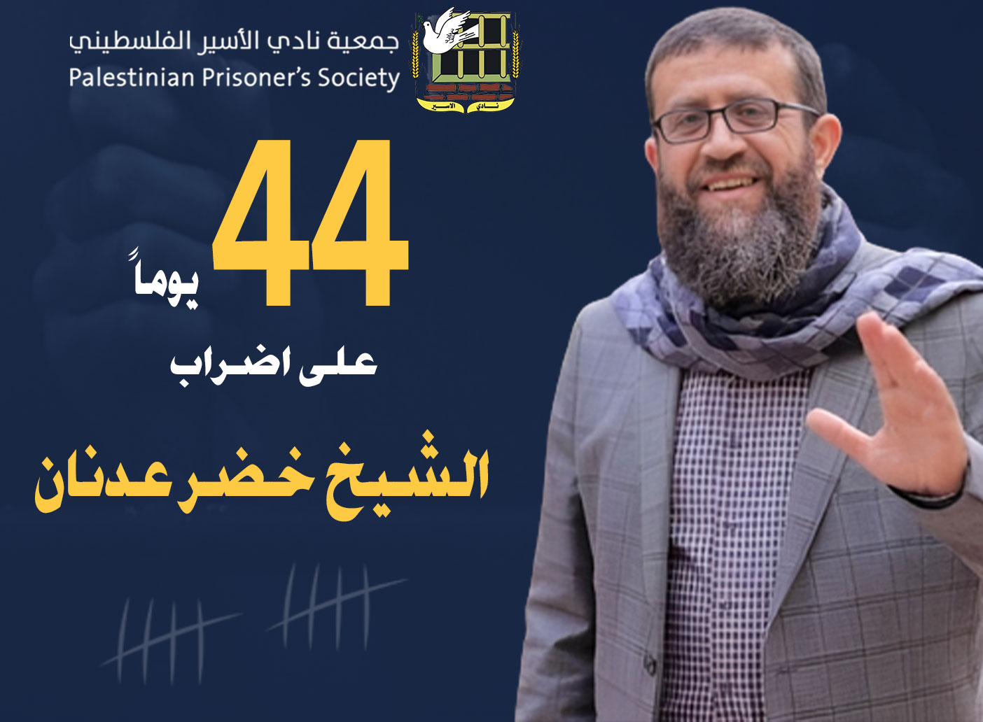 لليوم الـ44.. يواصل الأسير الشيخ خضر عدنان إضرابه عن الطعام