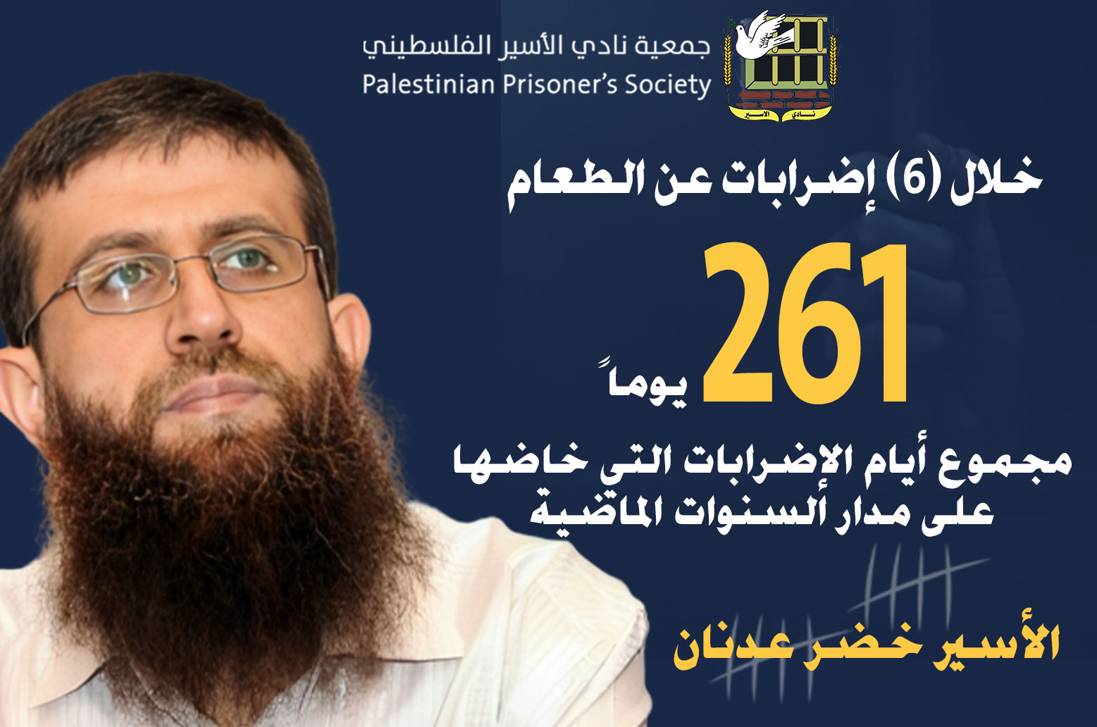 نادي الأسير: على مدار السّنوات الماضية خاض الأسير خضر عدنان خمس إضرابات سابقة بالإضافة إلى إضرابه الحالي المزيد من التفاصيل