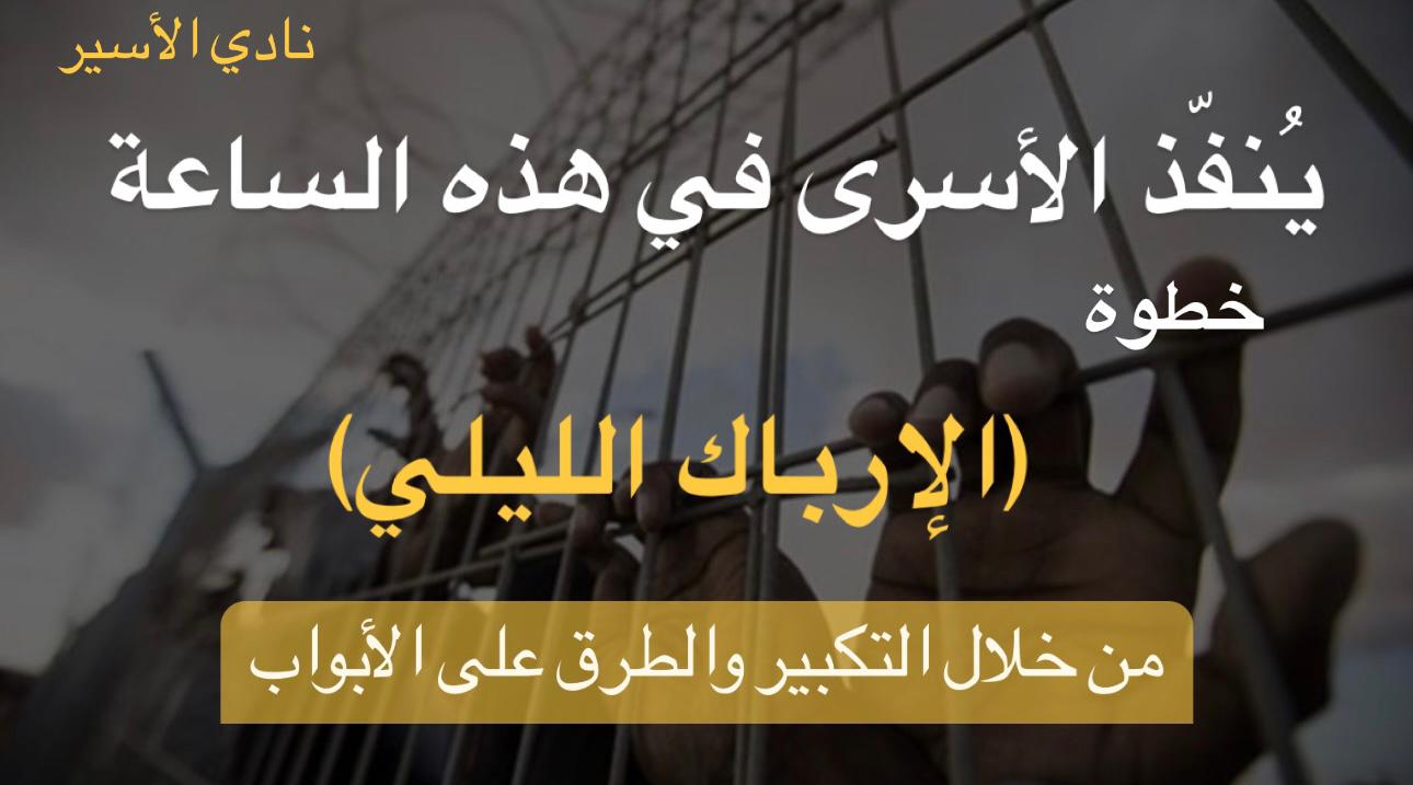 يُنفّذ الأسرى في هذه الساعة، خطوة (الإرباك الليلي)، من خلال التكبير والطرق على الأبواب، وهي جزء من خطوات العصيان المستمرة منذ 16 يومًا، رفضا لإجراءات الوزير المتطرف (بن غفير)