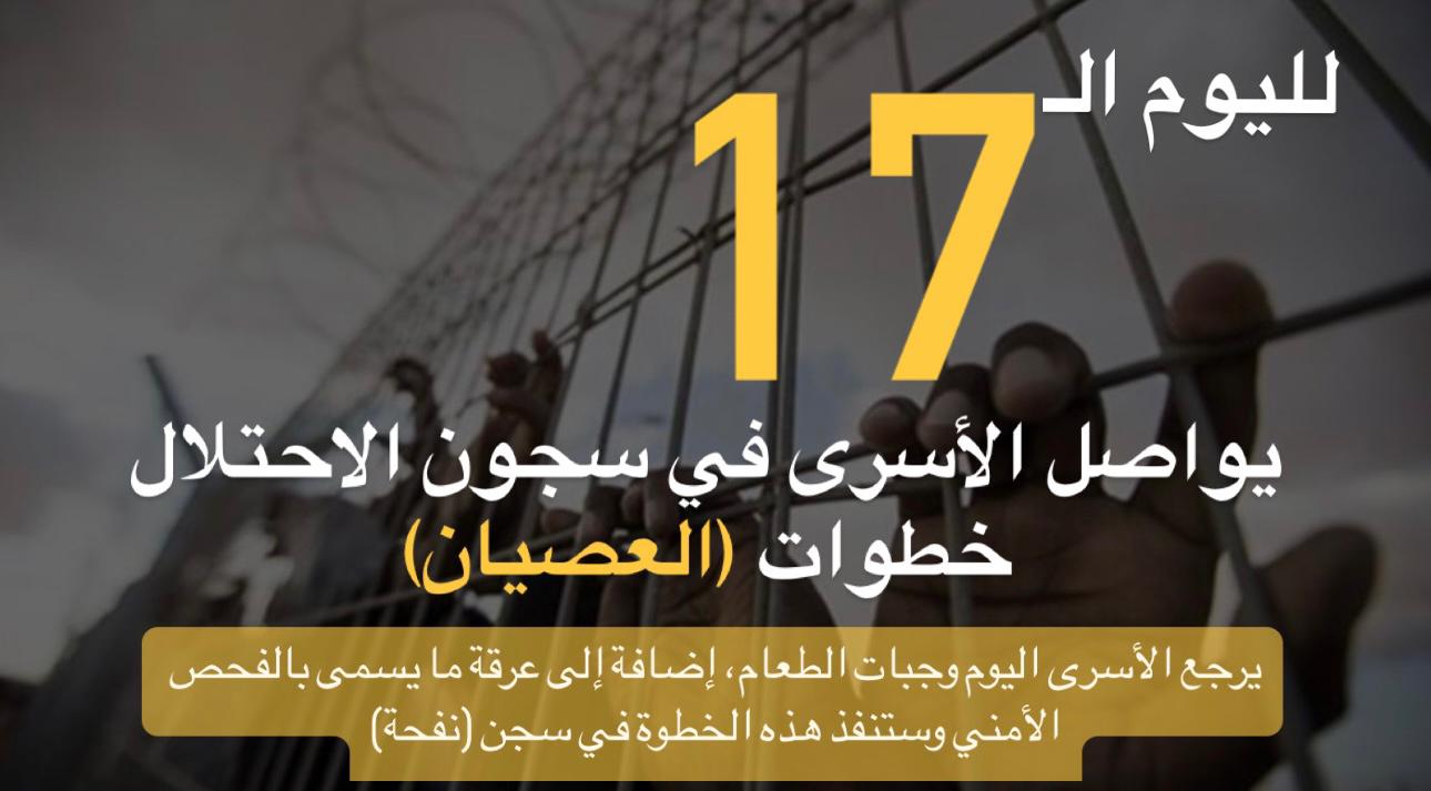 لليوم الـ17.. يواصل الأسرى في سجون الاحتلال خطوات (العصيان)