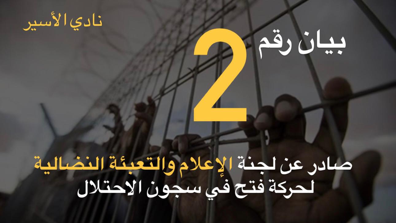 بيان رقم (2) صادر عن لجنة الاعلام والتعبئة النضالية لحركة فتح في سجون الاحتلال