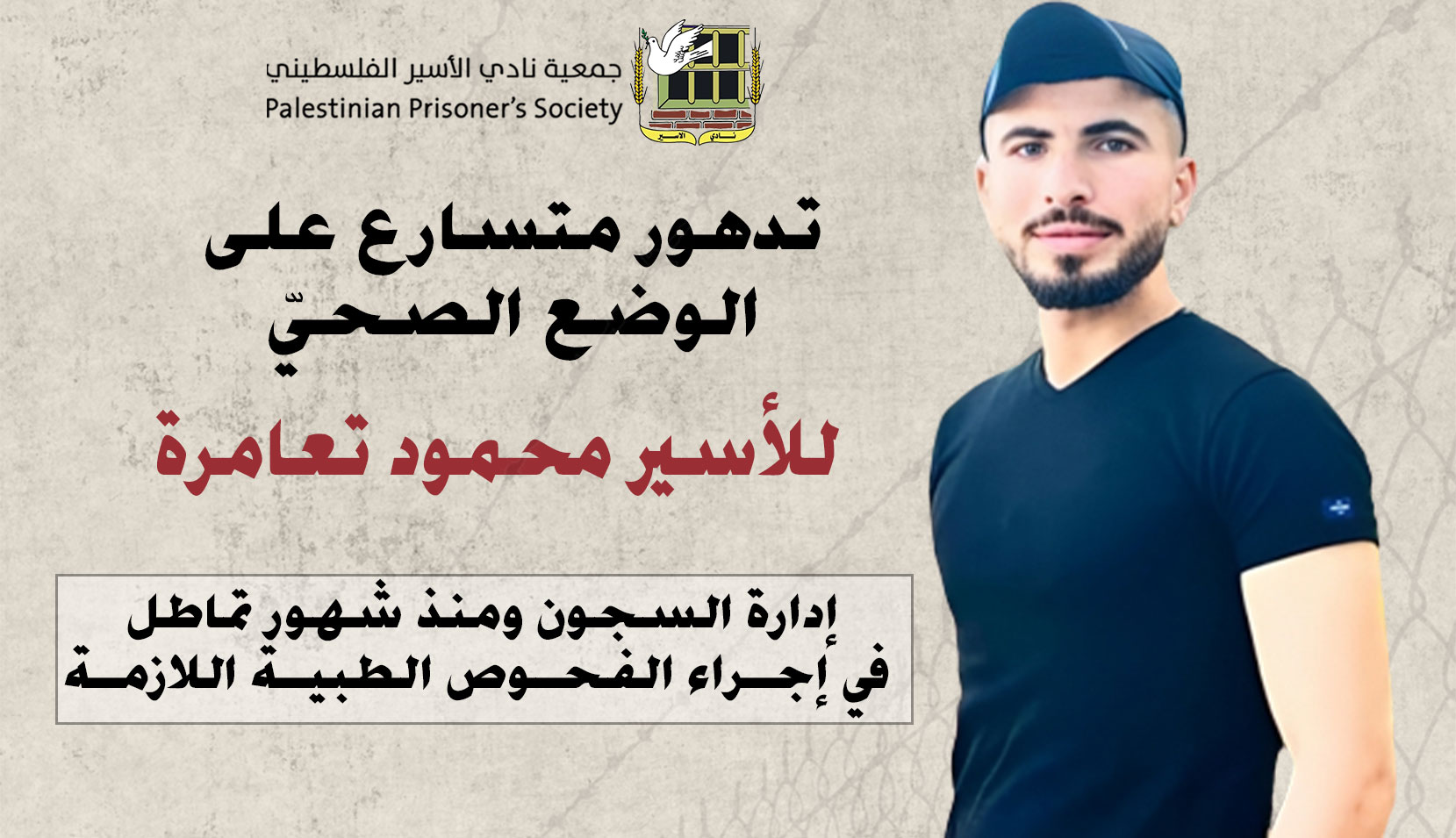 نادي الأسير: تدهور متسارع على الوضع الصحيّ للأسير محمود تعامرة