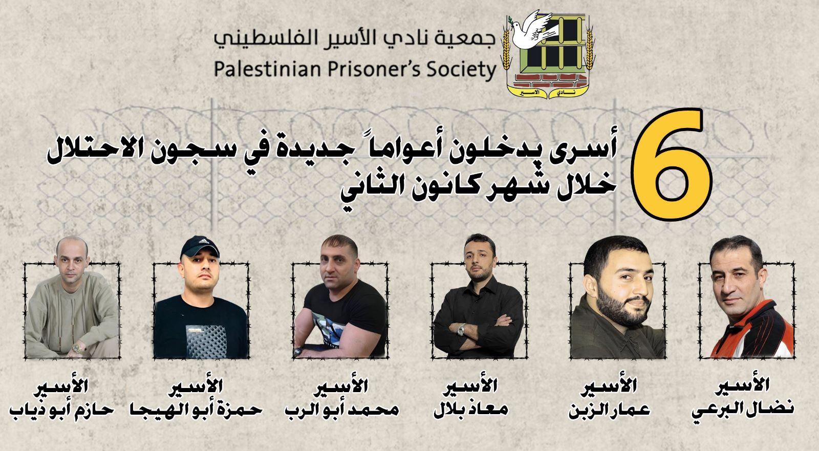 6 أسرى يدخلون أعواماً جديدة في سجون الاحتلال خلال شهر كانون الثاني