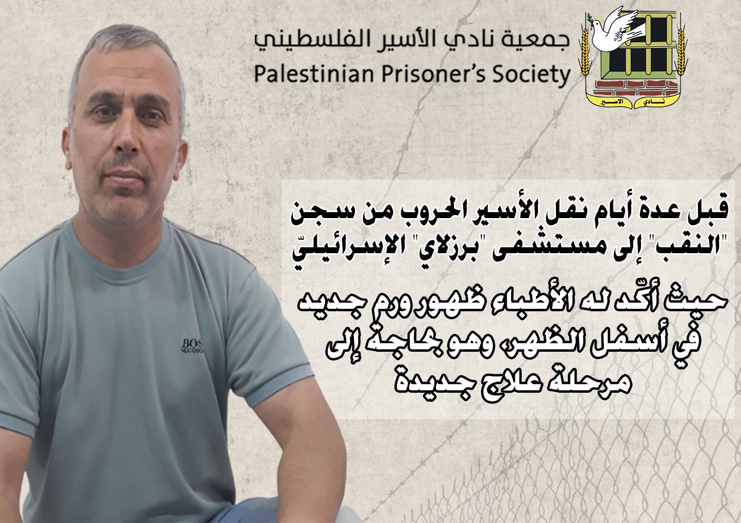 *نادي الأسير يُحمّل الاحتلال المسؤولية عن مصير الأسير علي الحروب بعد ظهور ورم جديد لديه*