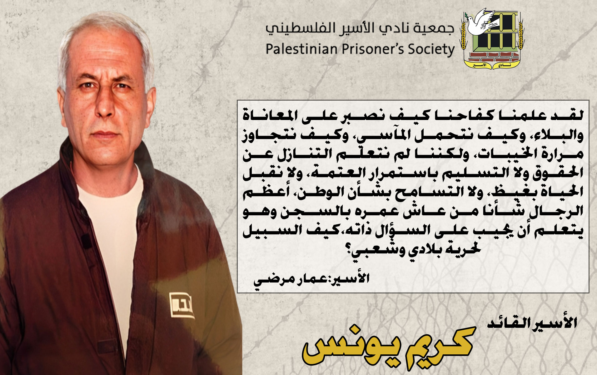رفاق الأسير كريم يونس ومع اقتراب موعد الإفراج عنه بعد 40 عامًا يوجهون رسائل له ولأبناء شعبنا