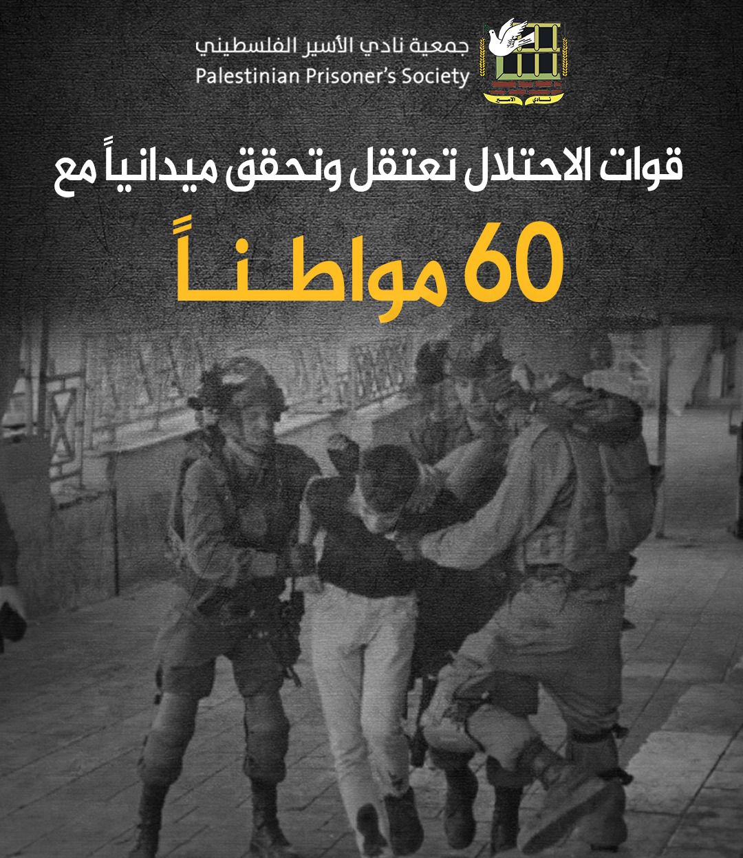 🔴 نادي الأسير: قوات الاحتلال تعتقل وتحقق ميدانياً مع 60 مواطناً