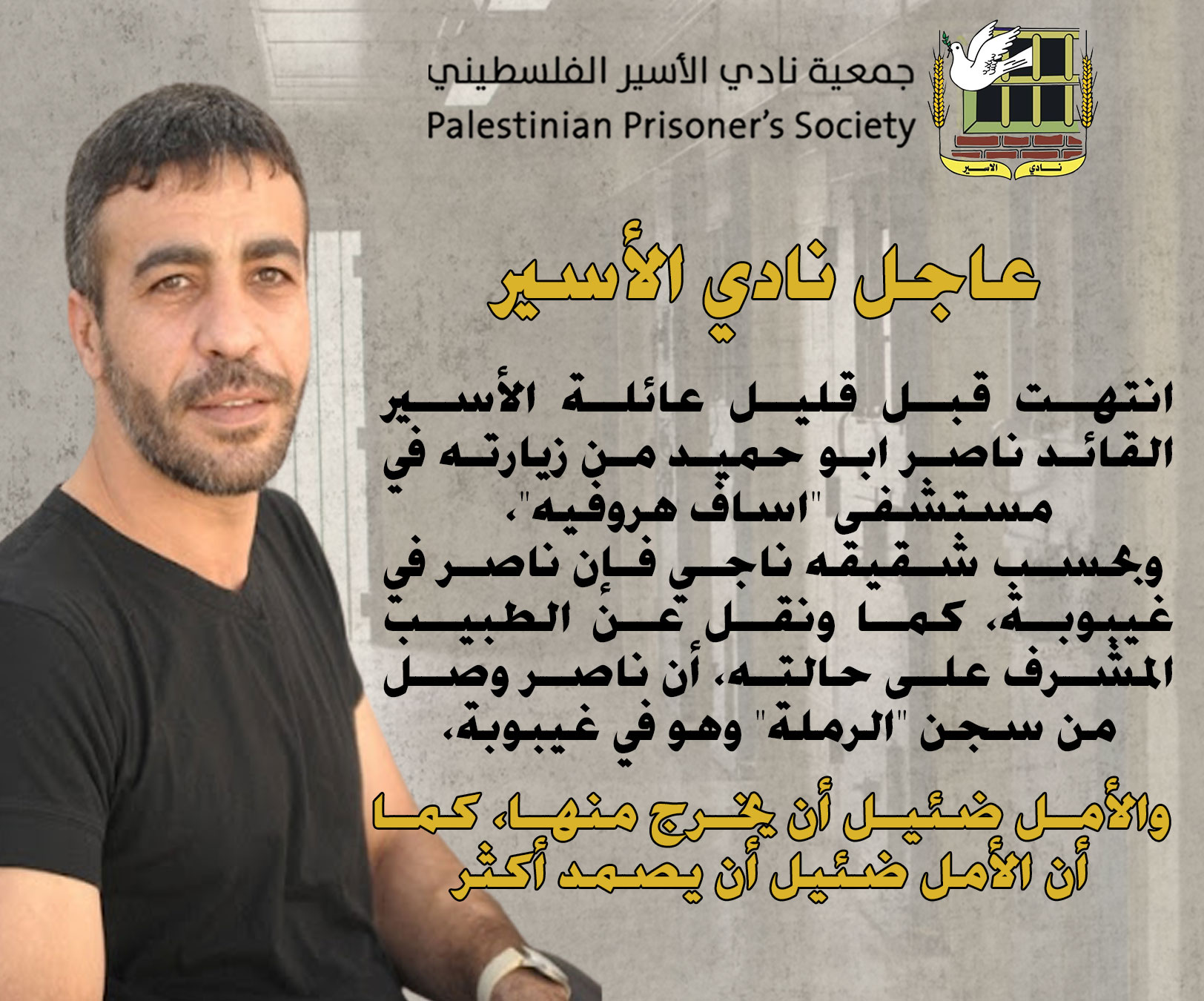 عاجل نادي الأسير: انتهت قبل قليل عائلة الأسير القائد ناصر ابو حميد من زيارته في مستشفى "اساف هروفيه" المزيد من التفاصيل