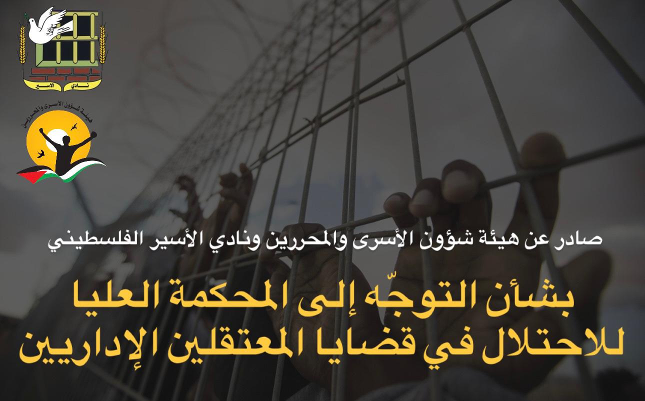 🔴 صادر عن هيئة شؤون الأسرى والمحررين ونادي الأسير الفلسطيني بشأن التوجّه إلى المحكمة العليا للاحتلال في قضايا المعتقلين الإداريين