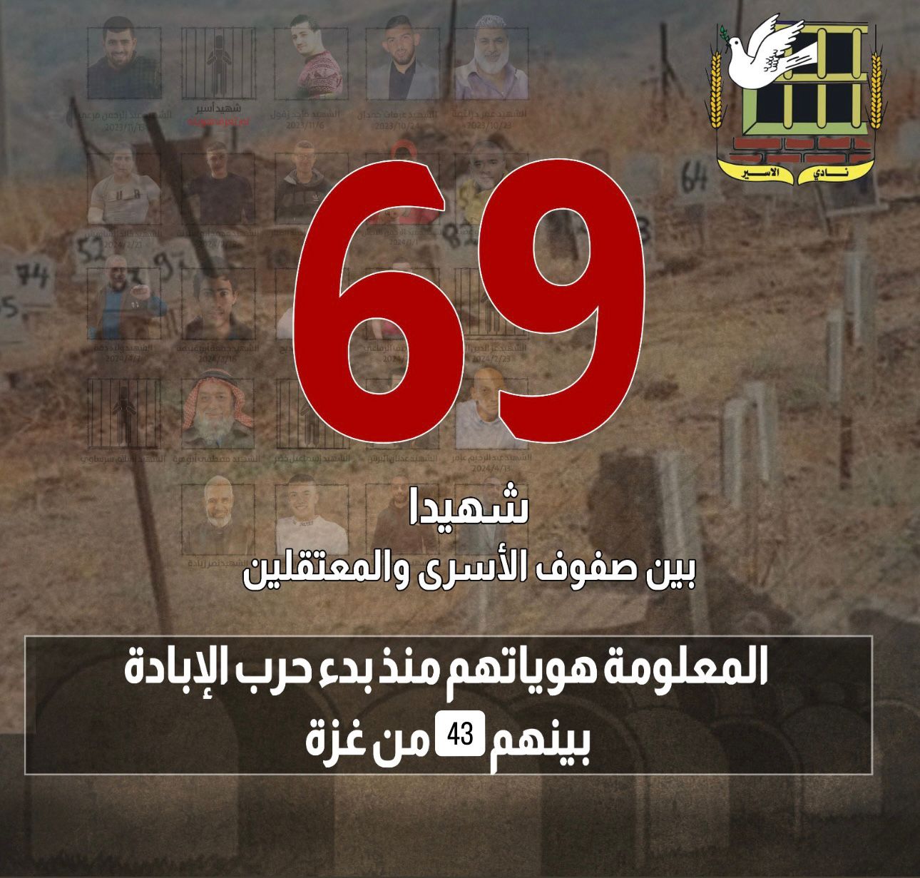 ▪ (69) شهيداً بين صفوف الأسرى والمعتقلين داخل سجون الاحتلال منذ بدء حرب الإبادة