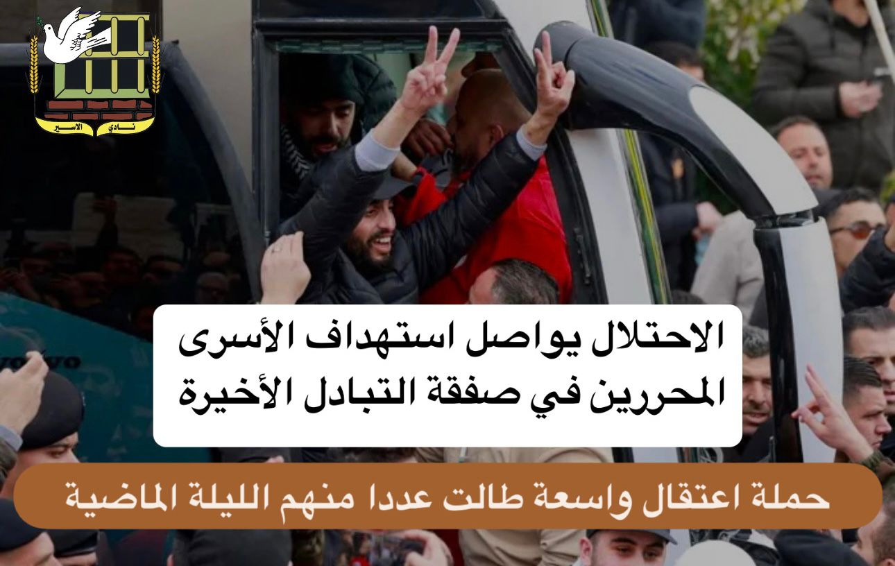 ● الاحتلال يواصل استهداف الأسرى المحررين في صفقة التبادل الأخيرة