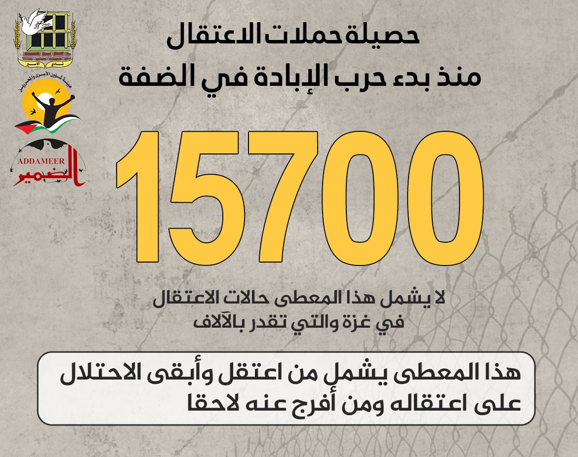 Israel carries out 15,700 political arrests of Palestinians in West Bank since Gaza genocide