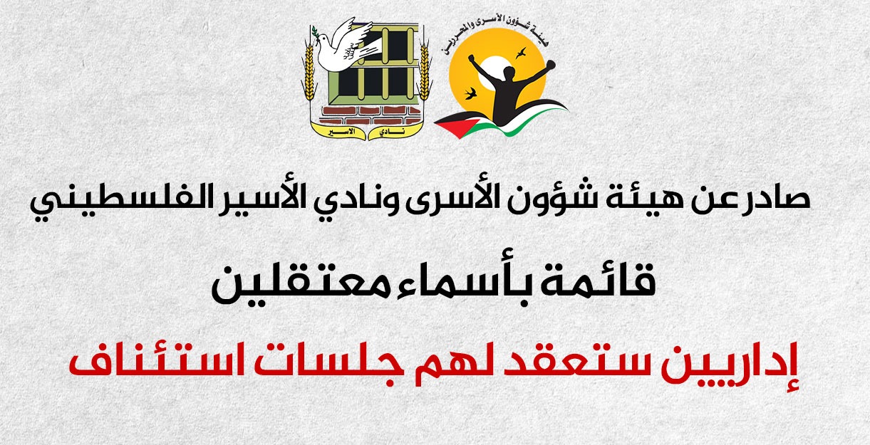 ● صادر عن هيئة شؤون الأسرى والمحررين ونادي الأسير الفلسطيني