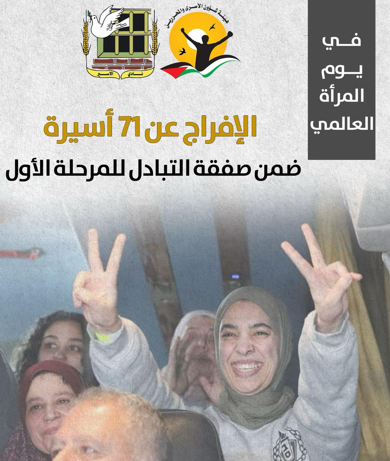 ▪ الإفراج عن 71 أسيرة ضمن صفقة التبادل للمرحلة الأول
