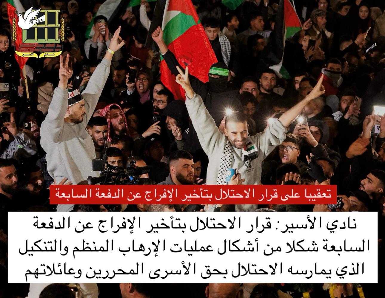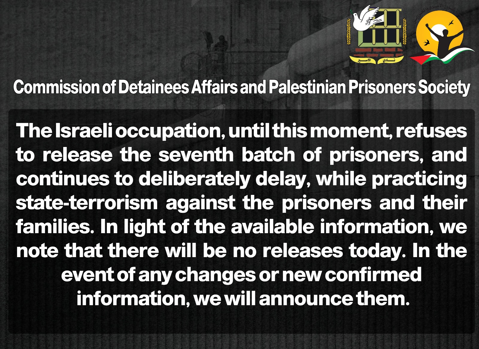 ■ تعقيبا على قرار الاحتلال تأخير الإفراج عن الدفعة السابعة