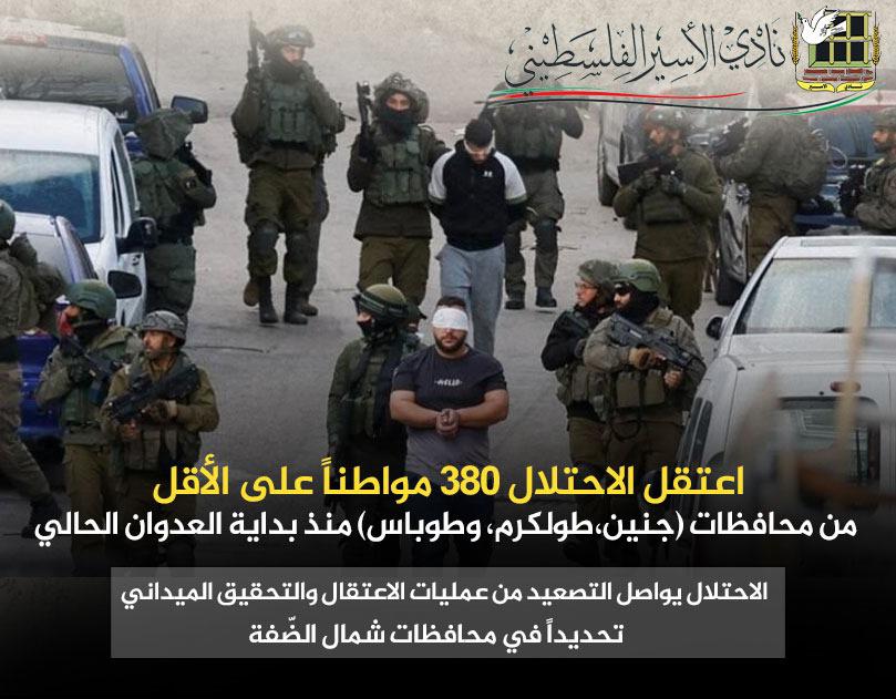 ■ الاحتلال يواصل التصعيد من عمليات الاعتقال والتحقيق الميداني تحديداً في محافظات شمال الضّفة