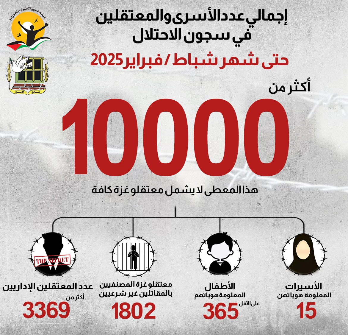 ■ تحديث لأعداد الأسرى لشهر شباط / فبراير 2025، علما أن هذه المعطيات لا تشمل المعتقلين كافة من غزة