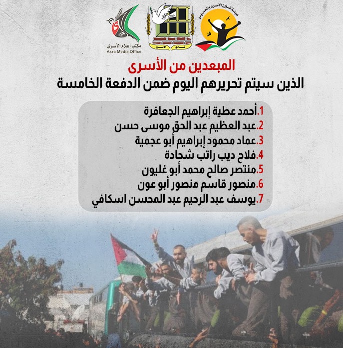 (المبعدين من الأسرى الذين سيتم تحريرهم اليوم ضمن الدفعة الخامسة)