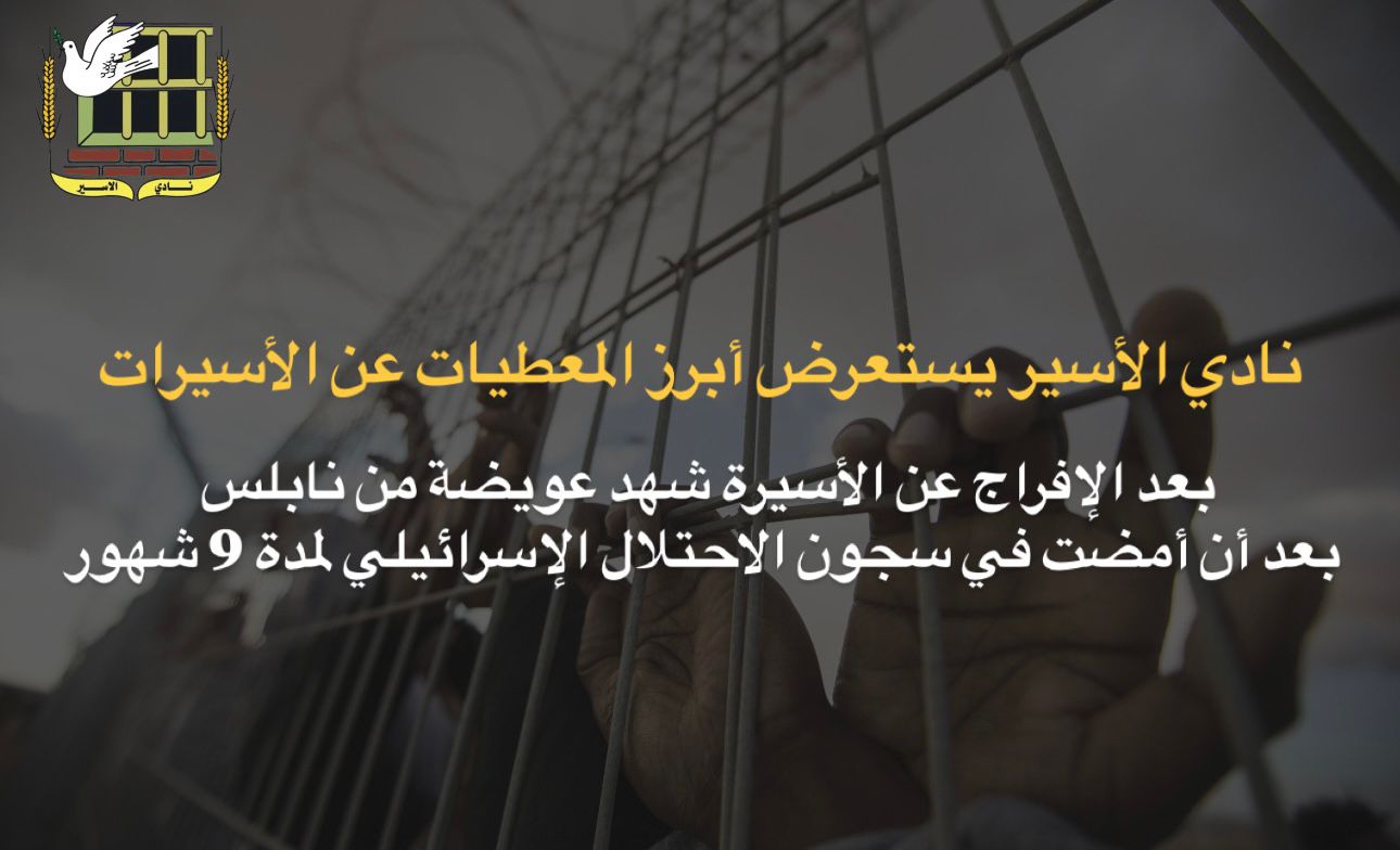 🔴 نادي الأسير يستعرض أبرز المعطيات عن الأسيرات بعد الإفراج عن الأسيرة شهد عويضة من نابلس بعد أن أمضت في سجون الاحتلال الإسرائيلي 9 شهور