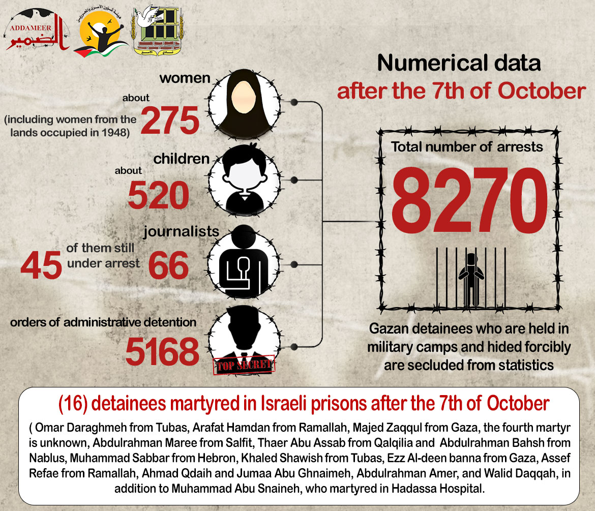 One of the key pieces of information regarding the arrest campaigns that took place after October 7th in the West Bank, including Jerusalem, is the significant increase in the number of prisoners as a result.
