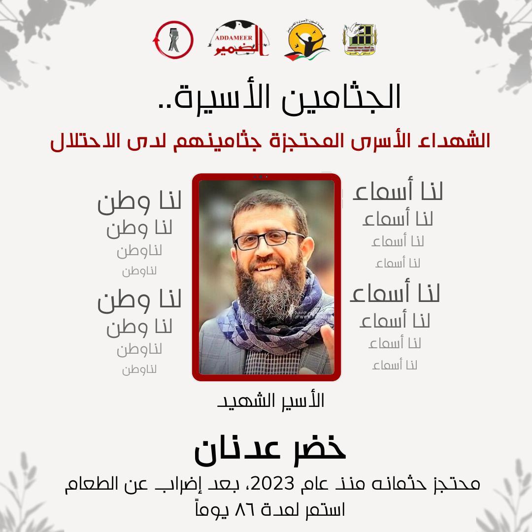 11. الأسير الشھید خضر عدنان الذي محتجز منذ تاريخ 2/5/2023، بعد إضراب عن الطعام استمر لمدة 86 یوماً رفضا لاعتقاله.