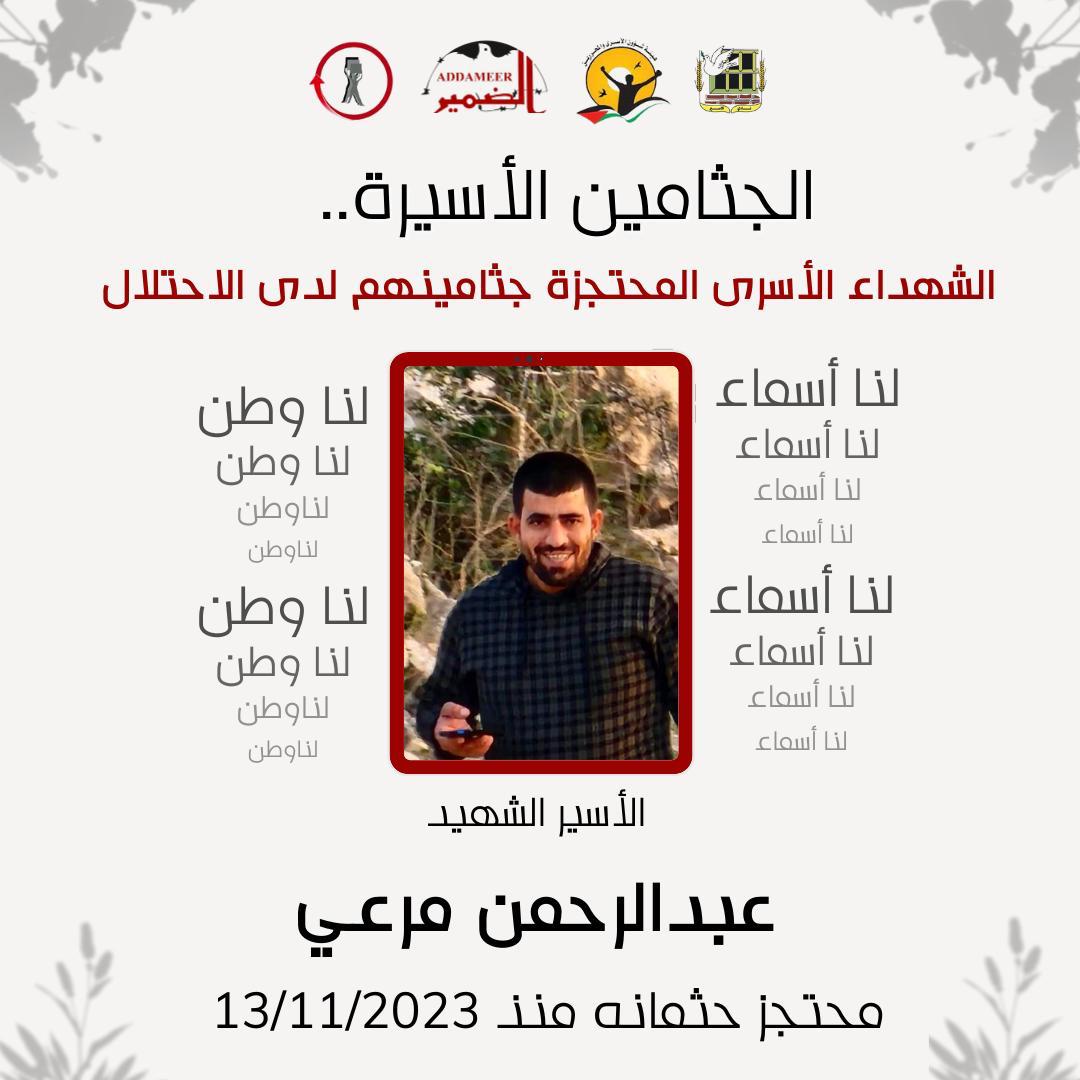 16. الأسير الشهيد عبد الرحمن مرعي محتجز جثمانه منذ تاريخ 13/11/2023.