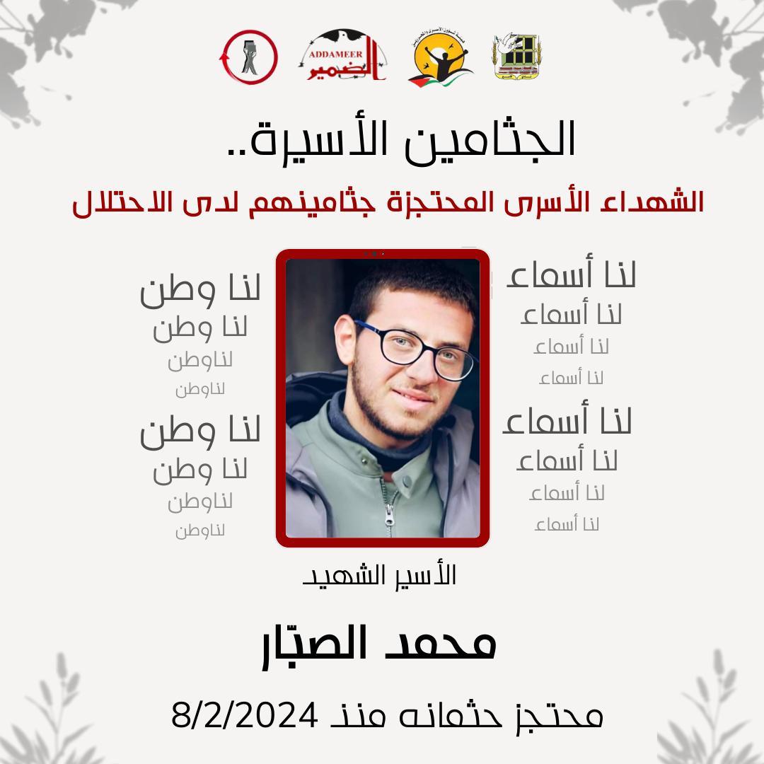 20. الأسير الشهيد محمد أحمد الصبار، محتجز جثمانه منذ تاريخ 8/2/2024