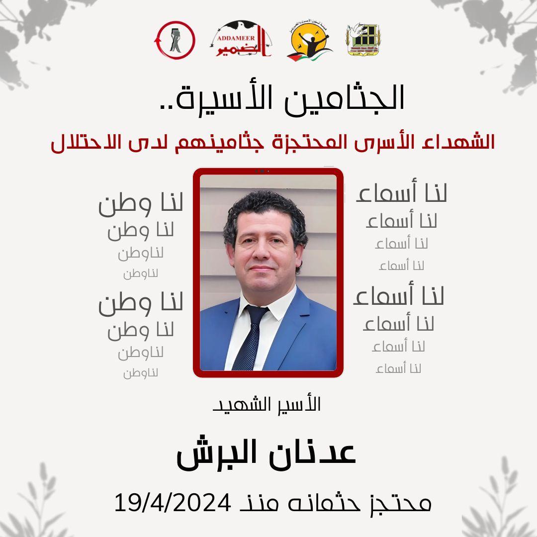 27. الأسير الشهيد الطبيب عدنان البرش، محتجز جثمانه منذ تاريخ 19/4/2024.